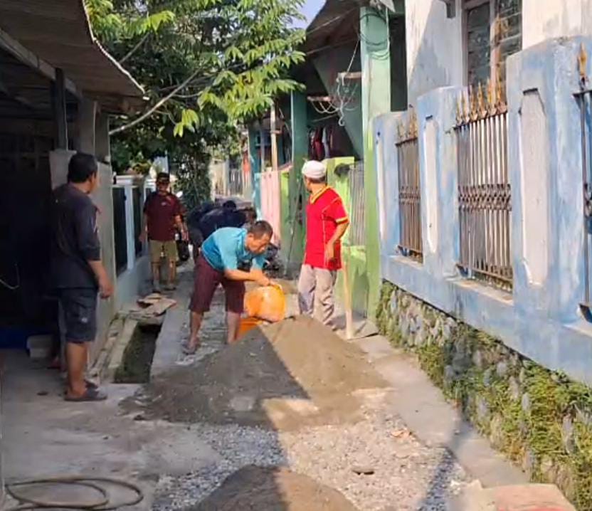 Depok – Pengurus RW 07 Kelurahan Bojong Pondok Terong (Boponter), Kecamatan Cipayung, Kota Depok, Sabtu (12/7-2025), terlihat guyub berjibaku bersama para warga dalam gelaran giat perbaikan jalan di Jalan Mushola Ath’ Thoyyibah II, lingkungan RT 04.