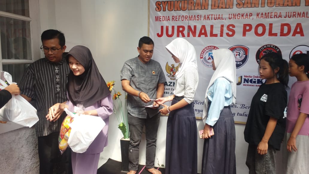 Bandung_harianesia.com_ Jumat, 13 Juni 2025 Media-media yang tergabung dalam Pokja Polda Jabar, yakni Media Reformasi Aktual, Media Ungkap ID, Media Faktareformasi, dan Media Camera Jurnalis, menggelar acara syukuran sekaligus santunan kepada anak-anak yatim piatu, bekerja sama dengan BAZNAS Provinsi Jawa Barat.