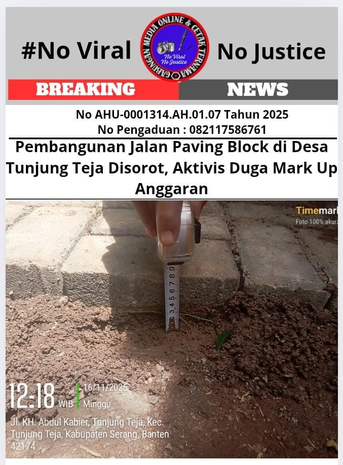 Serang (GMOCT) – Pembangunan jalan desa dengan perkerasan paving block di Kp. Cimanik RT 013/003, Desa Tunjung Teja, Kecamatan Tunjung Teja, Kabupaten Serang, menjadi sorotan aktivis Keluarga Masyarakat Serang (KAMARANG), Ahmad Saepi. Proyek yang menggunakan dana dari APBDes 2025 ini dinilai memiliki anggaran yang terlalu mahal.