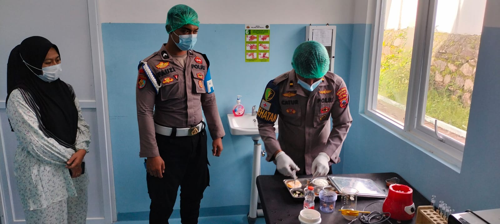 Pemeriksaan berlanjut pada uji fisik, organoleptik, dan kimia. Hasil uji fisik menyatakan kelima menu dalam kondisi baik, mulai dari bentuk, warna, bau, hingga rasa. Pada uji organoleptik, seluruh sampel dinyatakan normal. Adapun uji kimia menunjukkan hasil negatif terhadap kandungan arsenic, sianida, formaldehid, dan nitrit.