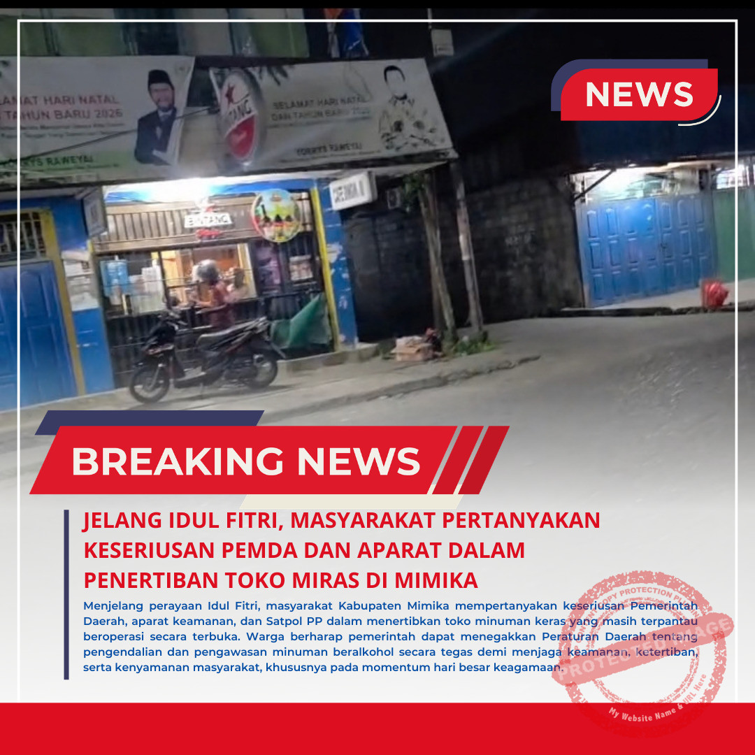 Timika_HARIANESIA.COM_ 7 Maret 2026 – Sejumlah masyarakat di Kabupaten Mimika mempertanyakan keseriusan Pemerintah Daerah bersama aparat keamanan serta Satuan Dinas Polisi Pamong Praja (Satpol PP) dalam menangani peredaran dan penjualan minuman keras (miras) yang masih terpantau terbuka menjelang perayaan Idul Fitri.