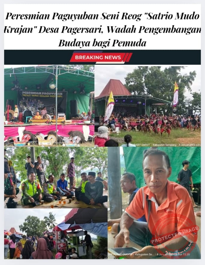 BERGAS, KABUPATEN SEMARANG (4 Januari 2026) – Paguyuban Seni Reog bernama “Satrio Mudo Krajan” resmi diperesmikan pada Minggu (4/1) di Lapangan Jogo Semi Desa Pagersari, Kecamatan Bergas, Kabupaten Semarang, Jawa Tengah. Acara yang dihadiri oleh berbagai unsur terkait ini bertujuan untuk melestarikan dan mengembangkan seni Reog sebagai warisan budaya lokal sekaligus menjadi wadah positif bagi aktivitas pemuda.