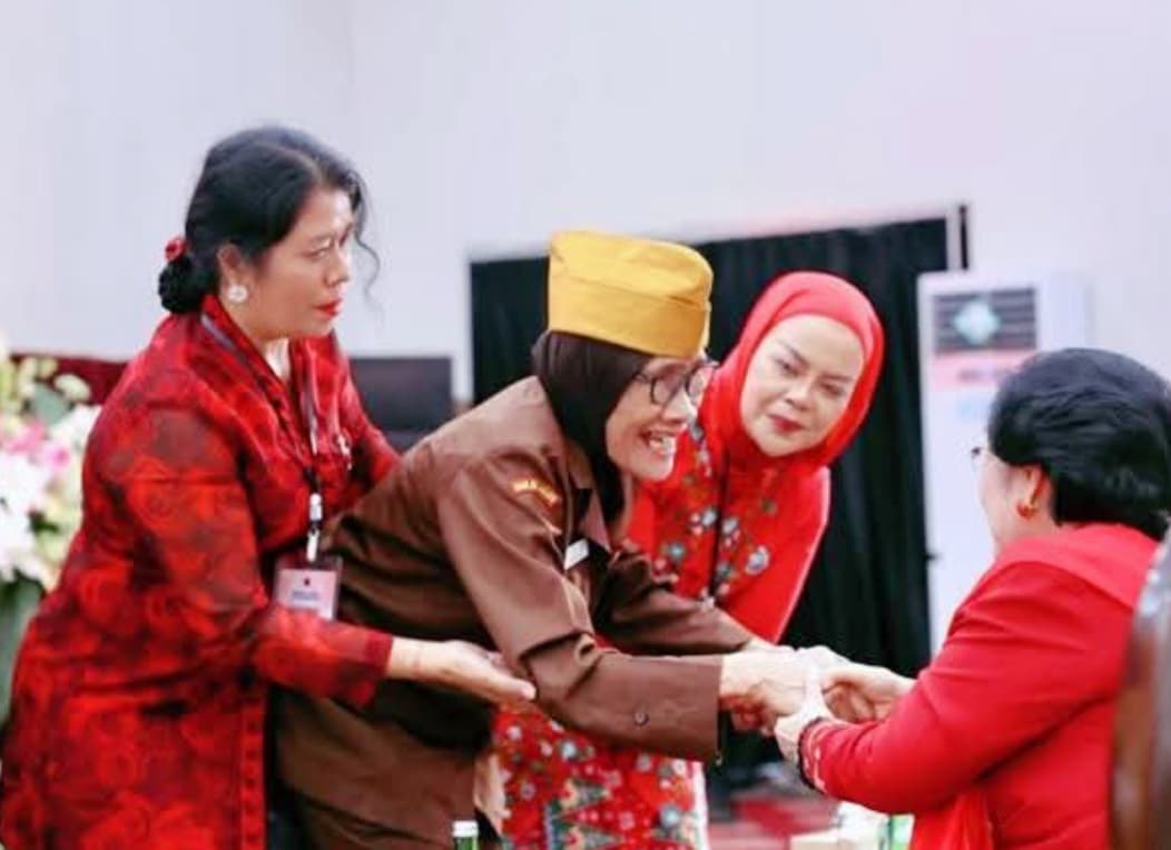 Suasana khidmat menyelimuti ruangan saat Megawati memberikan apresiasi khusus kepada tiga perempuan veteran Indonesia yakni :