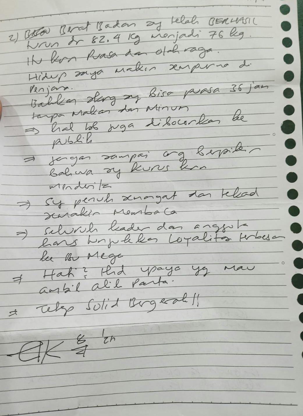 Pesan Hasto Kepada Kader Melalui Selembar Kertas Lusuh : “Tunjukan Loyalitas Terbesar ke Ibu Megawati Soekarnoputri”