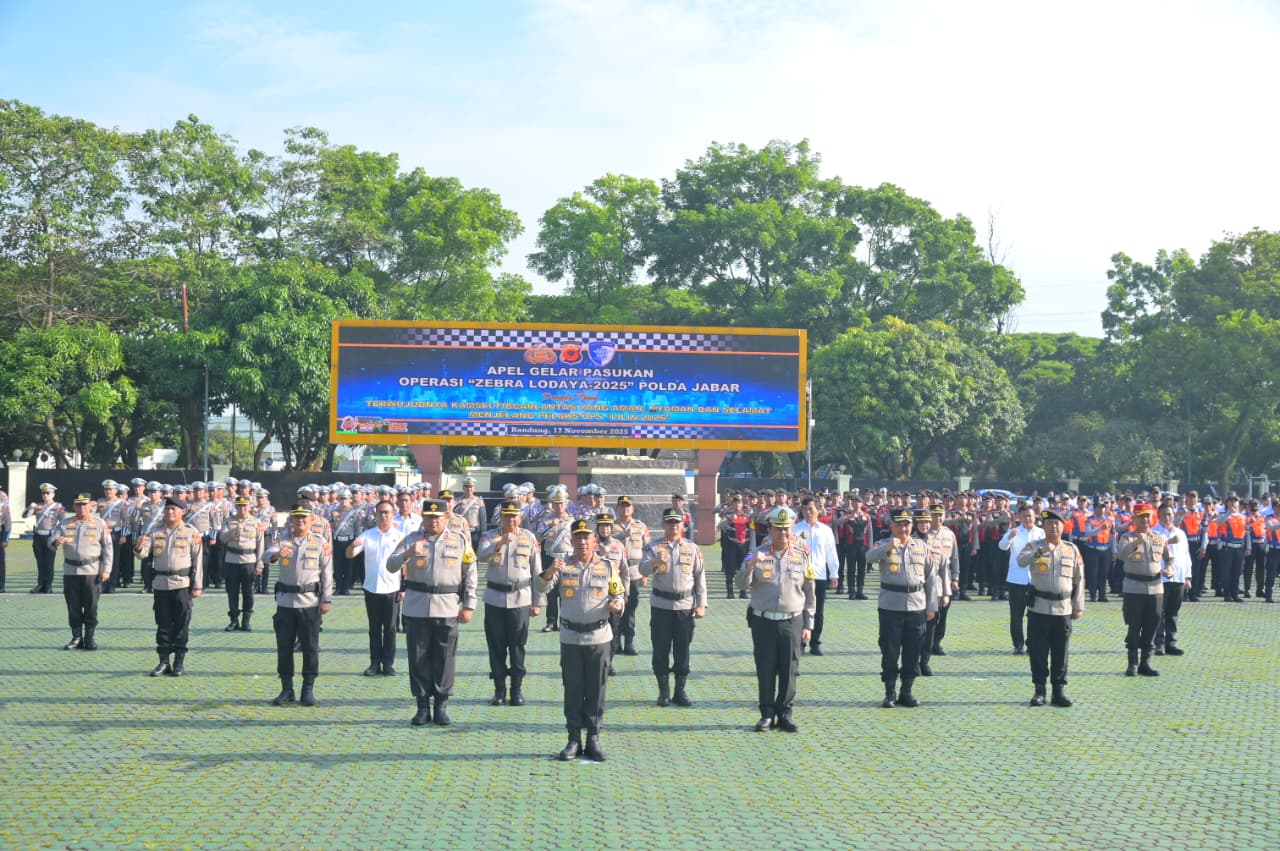 BANDUNG_HARIANESIA.COM_Kepolisian Daerah Jawa Barat (Polda Jabar) resmi menggelar Operasi Kepolisian Kewilayahan “Zebra Lodaya-2025”, yang dimulai pada hari Senin, 17 November 2025. Apel gelar pasukan yang dilaksanakan di Mapolda Jabar bertujuan untuk mengecek kesiapan seluruh personel sebelum pelaksanaan operasi di wilayah hukum Polda Jabar. Operasi ini merupakan upaya Polri, khususnya Polantas, bersama instansi terkait untuk menjaga keamanan, kelancaran arus lalu lintas, serta menurunkan titik kemacetan, pelanggaran, dan kecelakaan lalu lintas, sejalan dengan amanat Undang- Undang Nomor 22 Tahun 2009 tentang Lalu Lintas dan Angkutan Jalan.