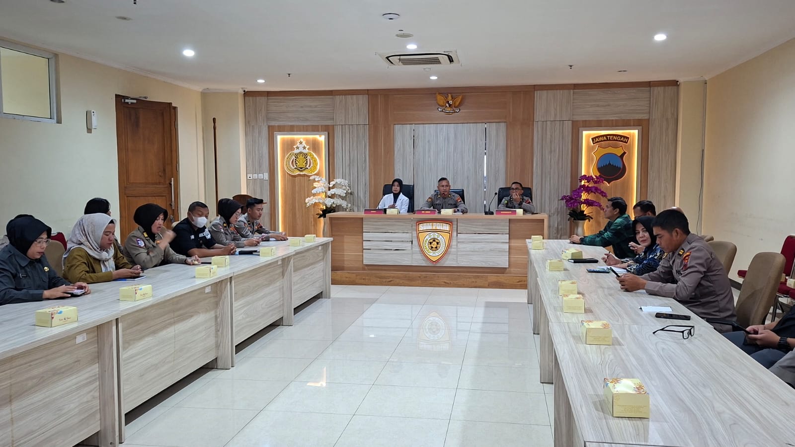 Kegiatan tersebut dipimpin oleh Kasubbagrohjashor Bagwatpers Biro SDM Polda Jateng, Kompol Agus Sumiarso, MH, didampingi Kompol Ris Prasetyo, S. Kep dari Biddokkes dan dr. Retno Hartanti, Sp.KFR. dari Rumkit Bhayangkara Tk.II Semarang. Para personil yang mengalami sakit juga mengikuti secara virtual didampingi oleh petugas dari fungsi SDM dan Sie Dokkes di jajaran.
