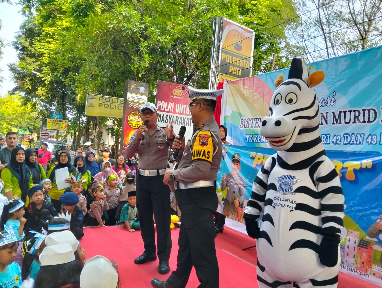 PATI_HARIANESIA.COM_Gelaran Police Art yang digelar Satlantas Polresta Pati pada Car Free Day (CFD) di Jalan P. Sudirman, Minggu (23/11/2025) pukul 05.30 WIB hingga selesai, menarik perhatian masyarakat sejak pagi. Kegiatan yang menjadi bagian dari Operasi Zebra Candi 2025 itu menghadirkan hiburan panggung, layanan publik, hingga pemeriksaan kesehatan gratis.