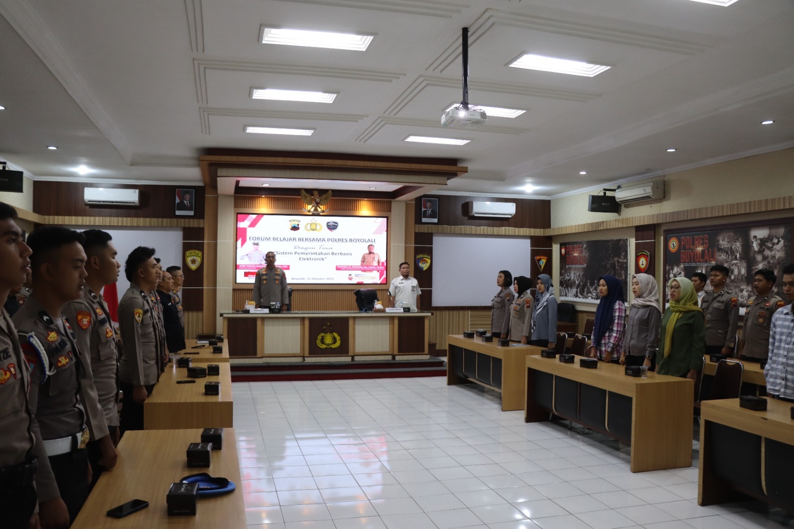 Boyolali – Dalam upaya meningkatkan wawasan dan kompetensi personel di bidang teknologi informasi dan digitalisasi pemerintahan, Polres Boyolali menggelar kegiatan Forum Belajar Bersama dengan tema Sistem Pemerintahan Berbasis Elektronik (SPBE), Rabu (15/10/2025) pagi, di Ruang Bhara Merapi Mapolres Boyolali.