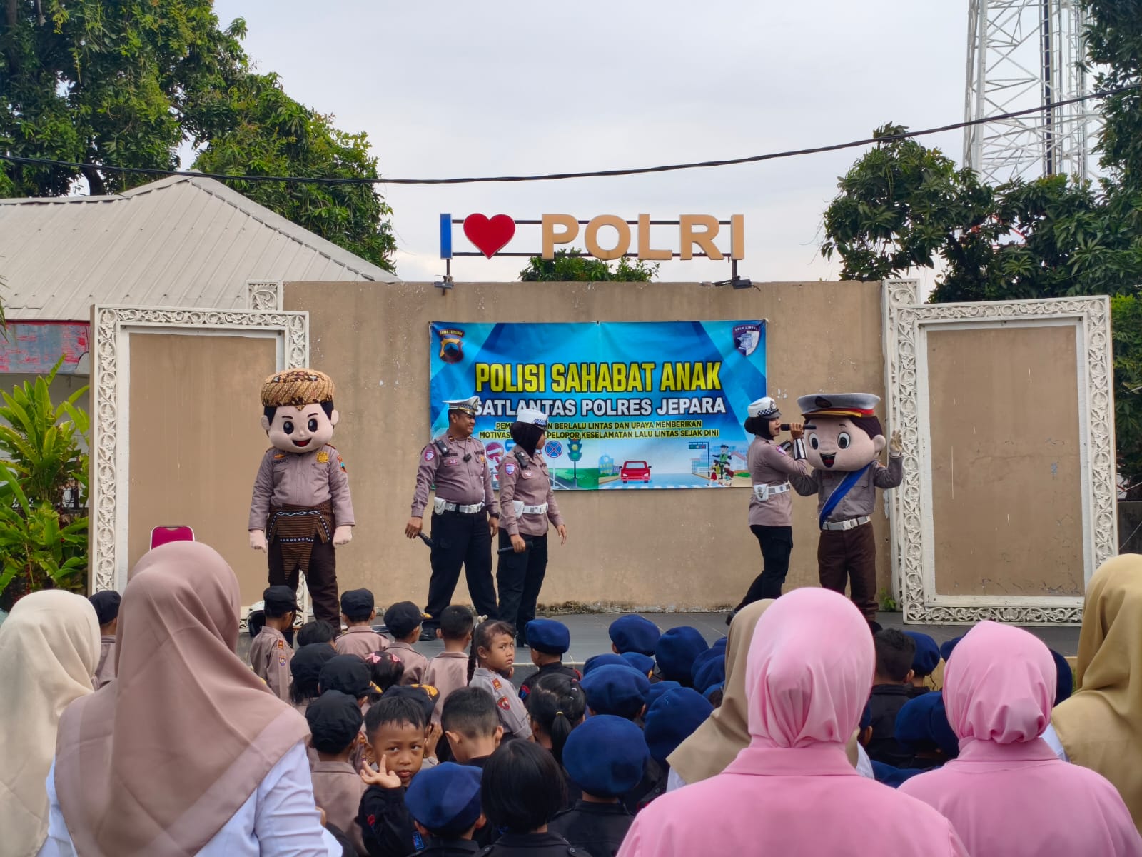 Pihak Satlantas Polres Jepara turun melaksanakan Polsanak ke anak-anak TK Bhayangkari 46 & 47 Jepara di Mapolres setempat, pada Rabu (19/11/2025).