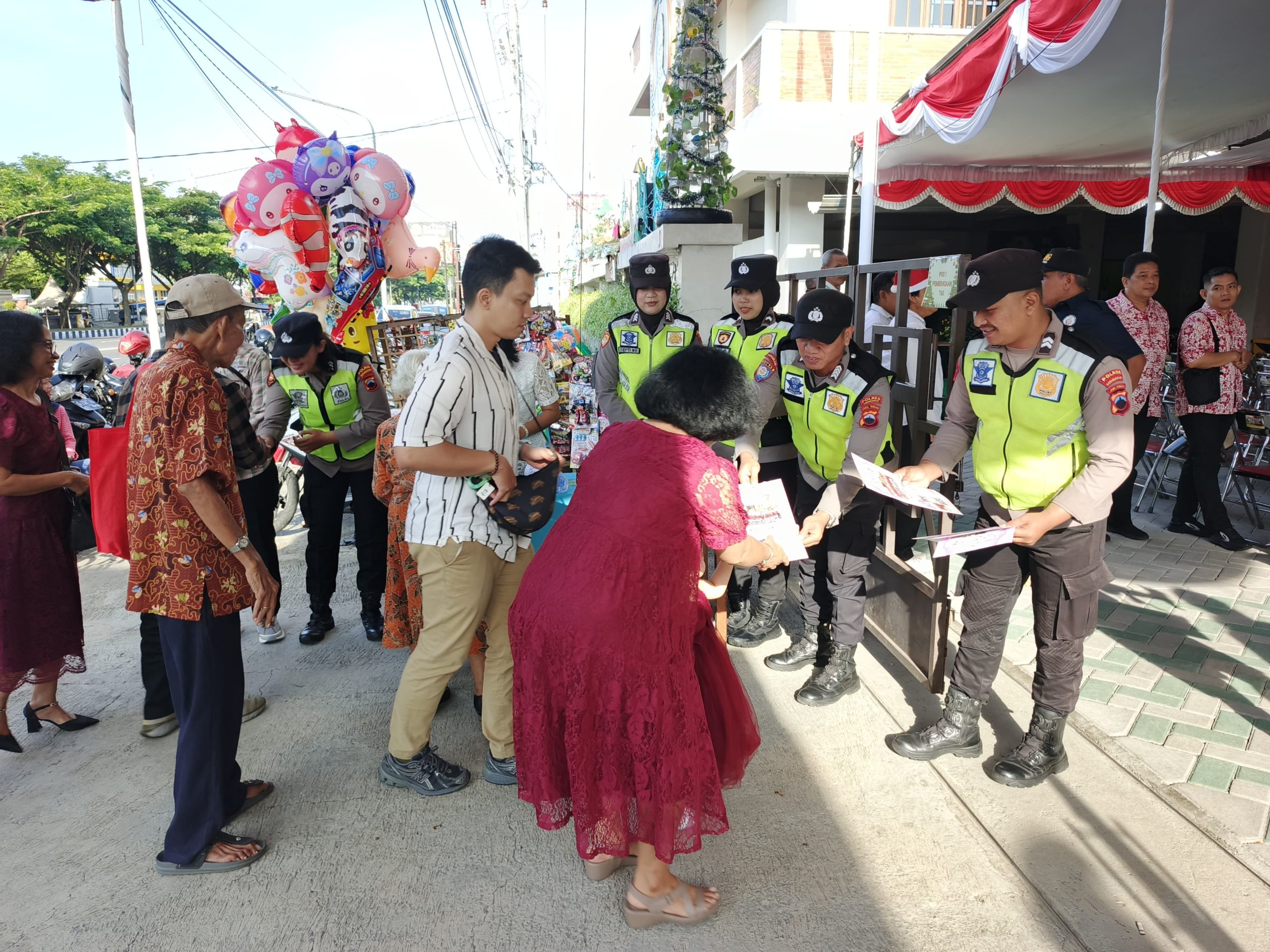 Kapolres Karanganyar AKBP Dr. Hadi Kristanto, S.I.K., M.M., bersama Bupati Karanganyar dan jajaran Forkopimda menyempatkan diri menyapa jemaat serta pengurus gereja. Kehadiran aparat keamanan di tengah-tengah umat Kristiani tidak hanya sebagai bentuk pengamanan, namun juga wujud pelayanan dan kepedulian Polri terhadap masyarakat.