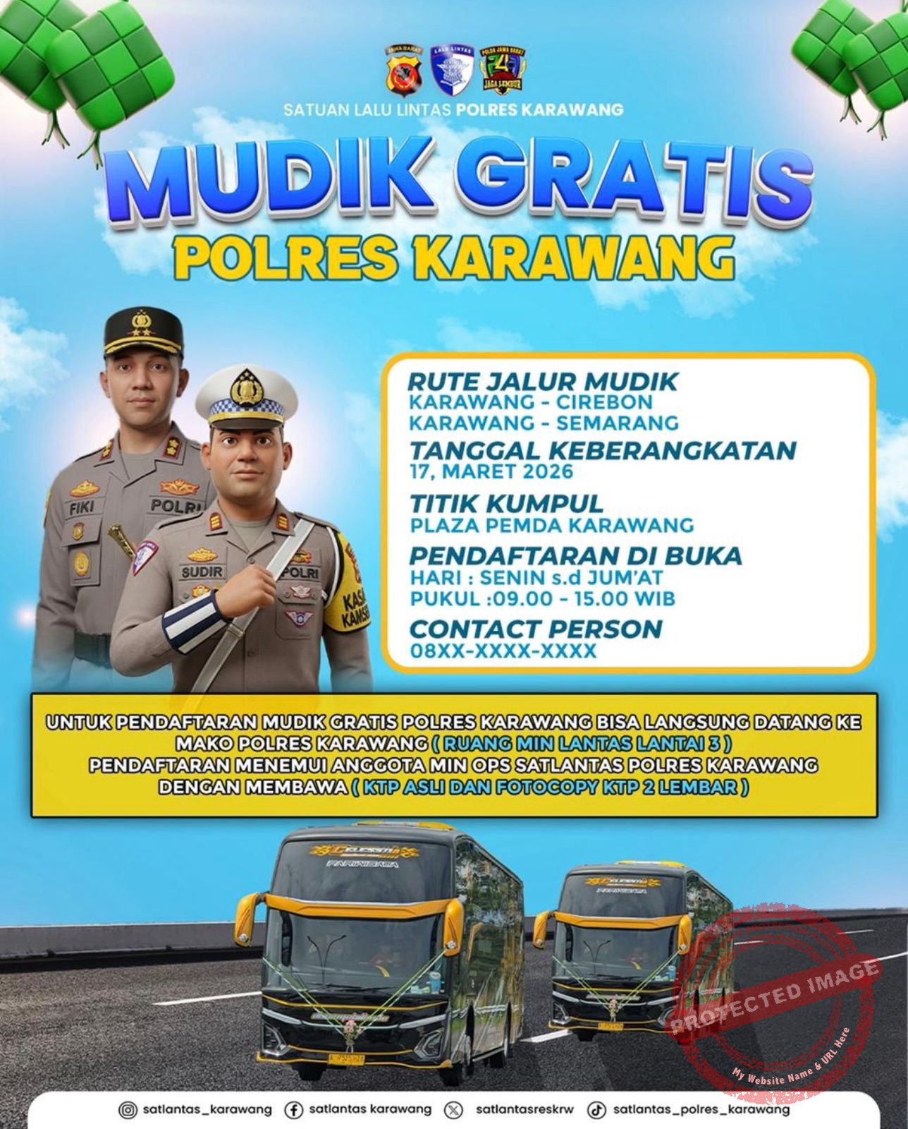 Karawang — Polres Karawang melalui Satuan Lalu Lintas membuka program Mudik Gratis bagi masyarakat yang ingin pulang ke kampung halaman pada momen Hari Raya Idul Fitri 1447 Hijriah. Program ini merupakan bentuk pelayanan Polri untuk membantu masyarakat agar dapat mudik dengan aman, nyaman, dan tertib.