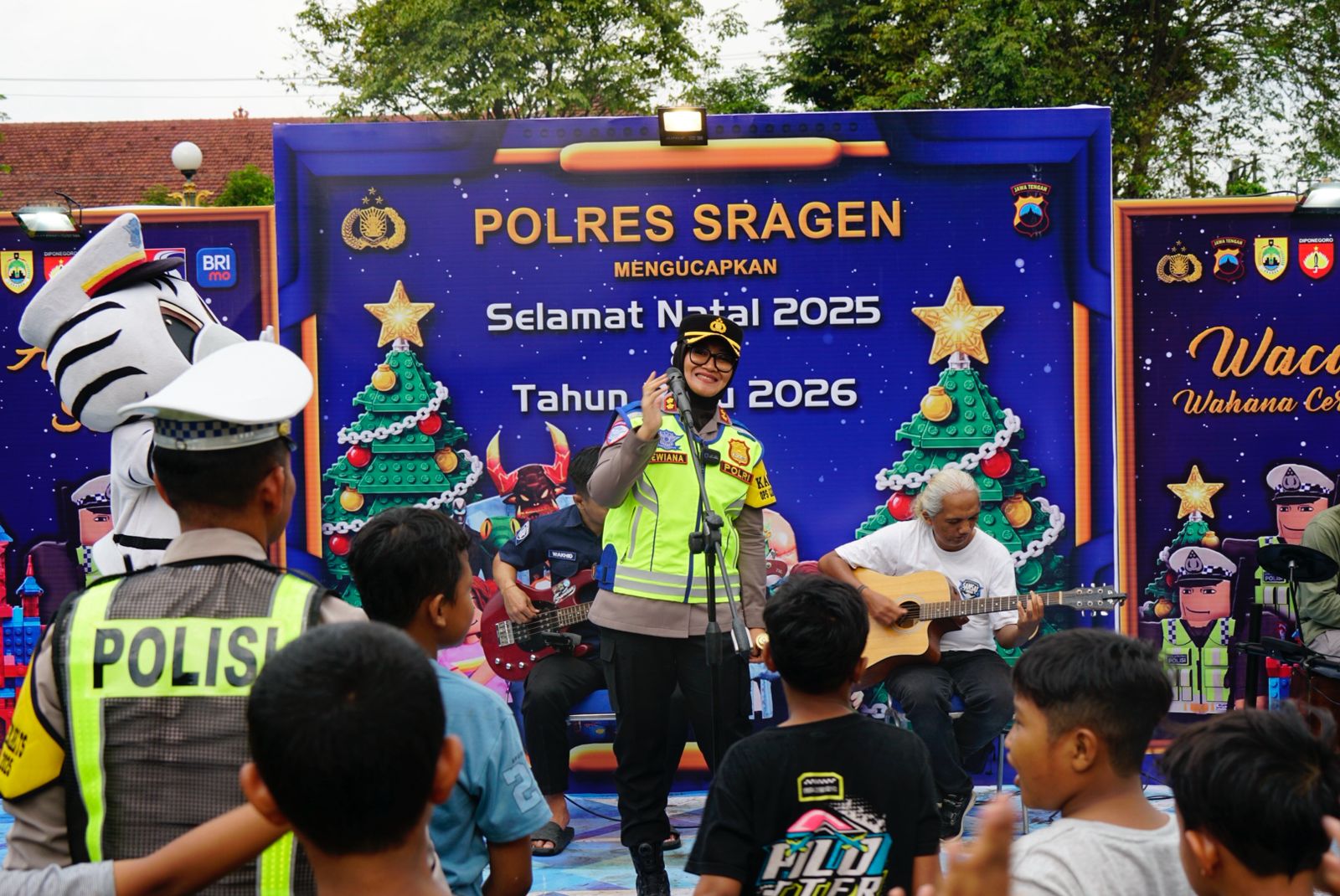 Sragen, Jateng – Operasi Lilin Candi 2025 di Kabupaten Sragen tak hanya identik dengan pengamanan arus mudik dan balik Natal serta Tahun Baru. Polres Sragen menghadirkan wajah lain pelayanan kepolisian yang penuh kehangatan dan keceriaan, khususnya bagi anak-anak.