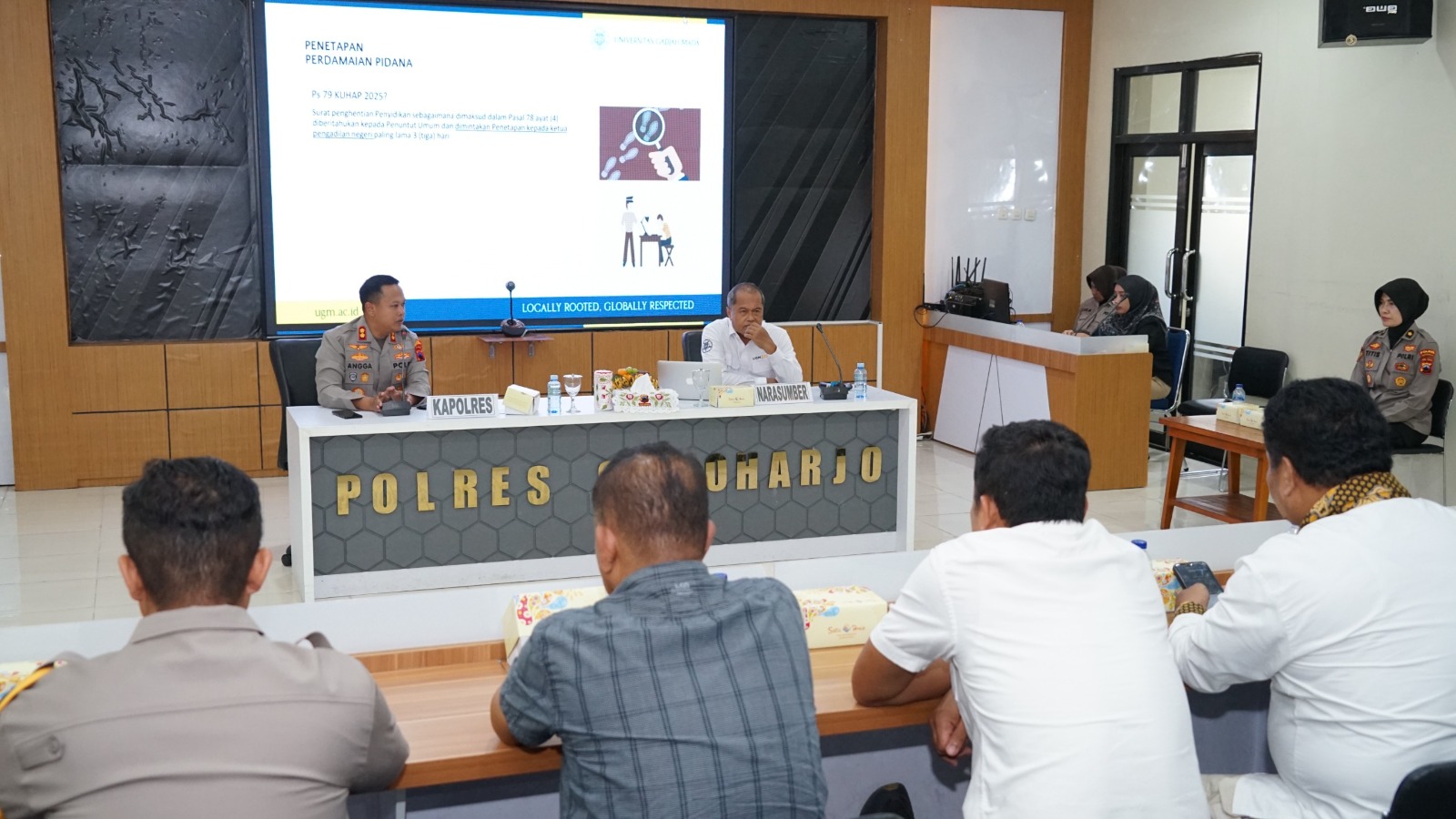Forum tersebut dihadiri langsung Kapolres Sukoharjo AKBP Anggaito Hadi Prabowo, jajaran pejabat utama seperti Kabag SDM, KBO Satreskrim, KBO Satnarkoba, Kanit Reskrim Polsek jajaran, anggota Polwan, serta perwakilan anggota Polres Sukoharjo.