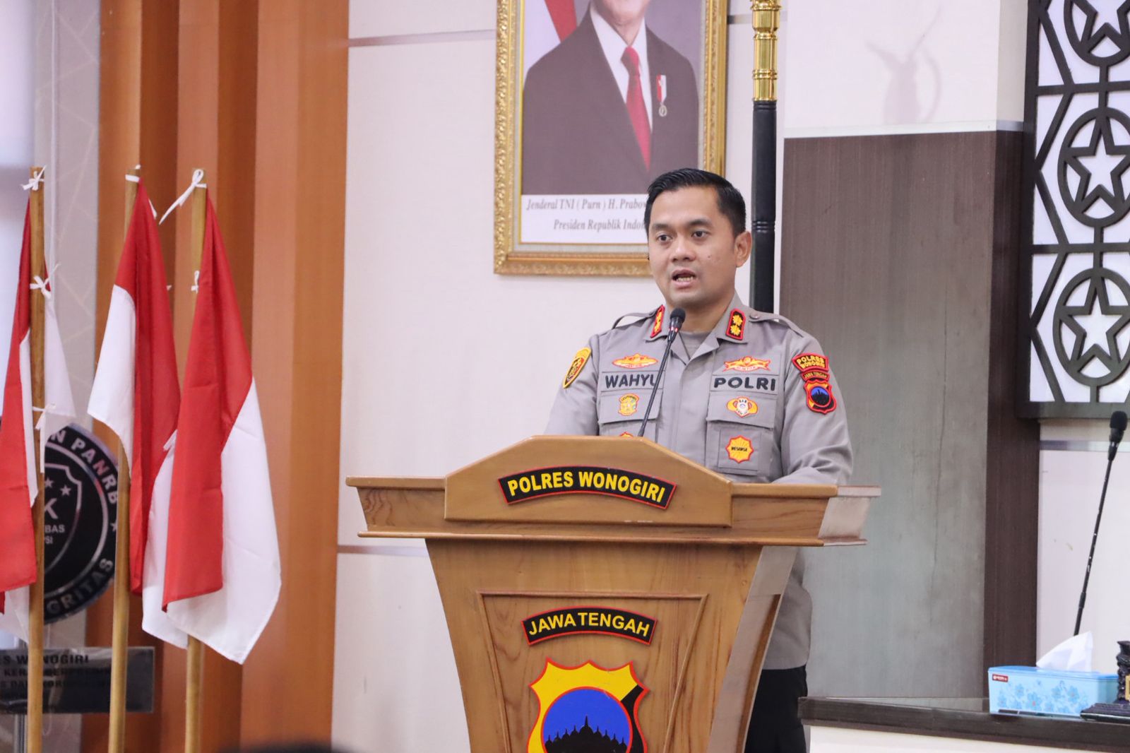 Kegiatan dipimpin langsung oleh Kapolres Wonogiri AKBP Wahyu Sulistyo, S.H., S.I.K., M.P.M., didampingi Wakapolres Kompol Parwanto, S.H., M.H., serta diikuti para Kabag, Kasat, Kapolsek, perwira dan anggota Polres Wonogiri.