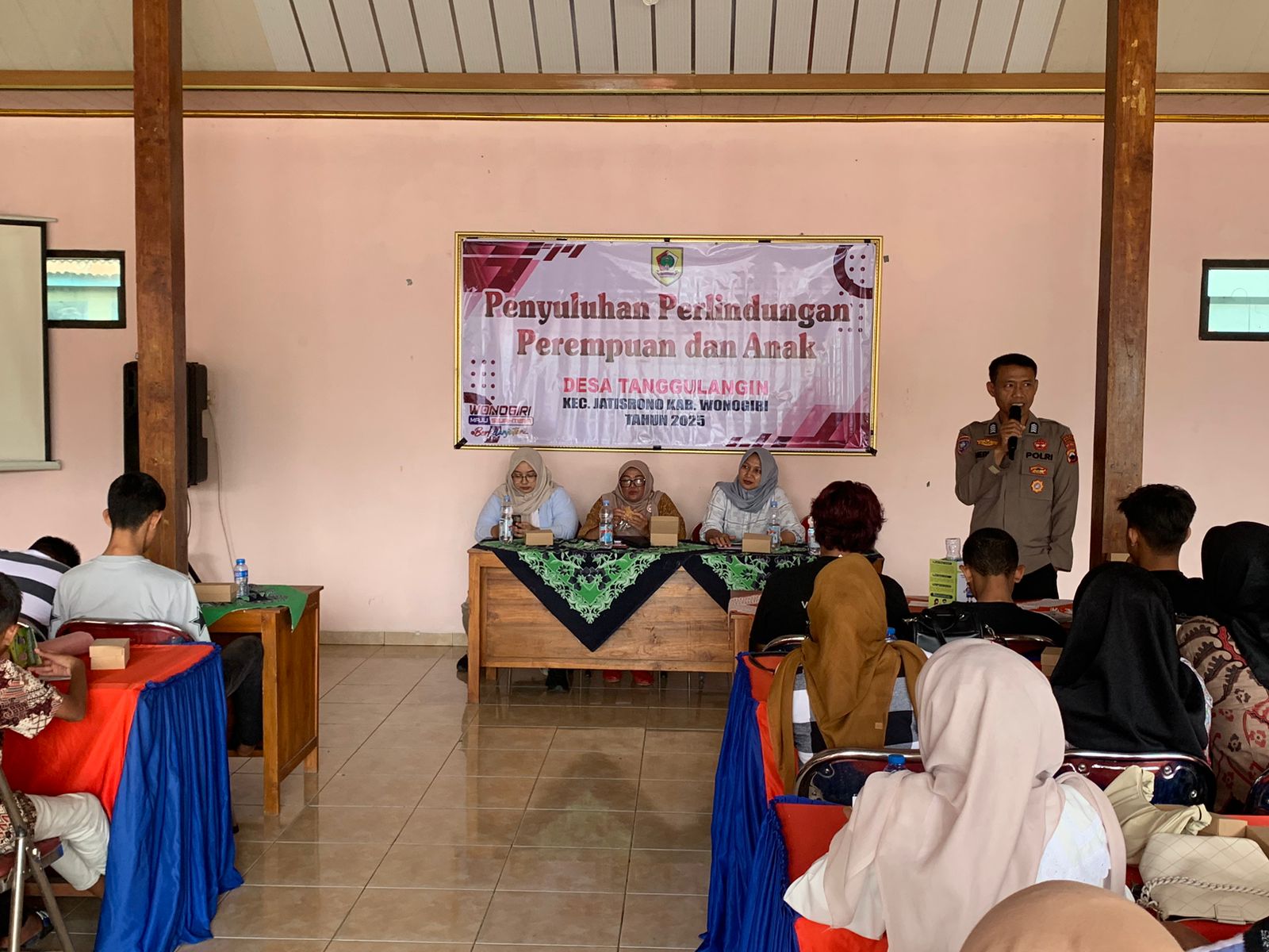 Kegiatan dipimpin Kanit Binmas Polsek Jatisrono Bripka Heru Suwadirman S.H bersama Bripda Nabil. Sosialisasi ini menggandeng Dinas PPKB dan P3A Kabupaten Wonogiri, perangkat desa, kader posyandu, serta remaja kelurahan. Hadir pula Kepala Desa Tanggulangin, Sumarsih.