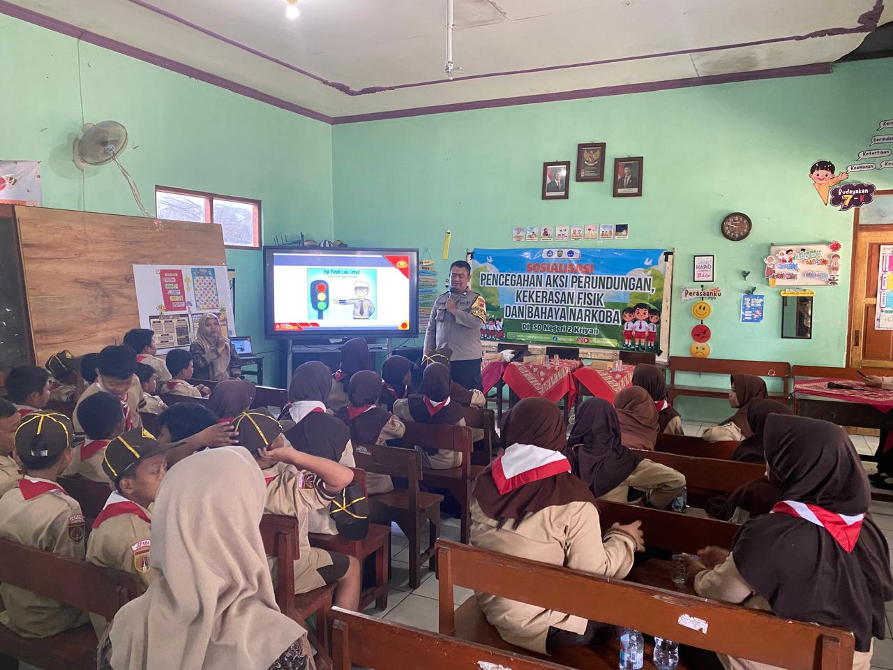 Dalam kesempatan itu, Aiptu Ari Wiyanto memberikan penyuluhan interaktif yang dikemas dengan pendekatan komunikatif agar mudah dipahami oleh anak-anak usia sekolah dasar.