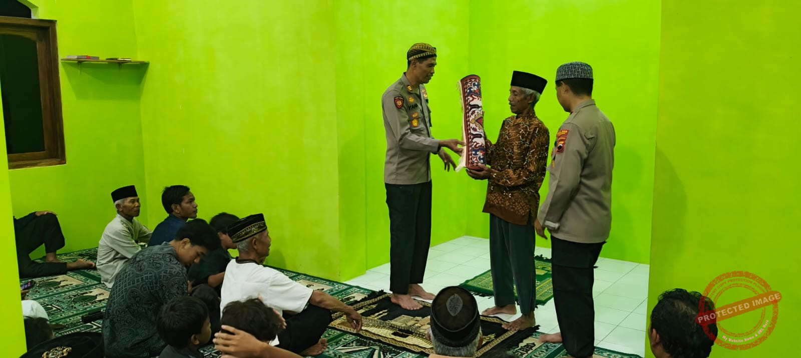 Tak hanya itu, kepedulian sosial juga ditunjukkan dengan penyerahan sarana kontak berupa sajadah kepada takmir masjid sebagai simbol kebersamaan dan dukungan terhadap kegiatan keagamaan warga.