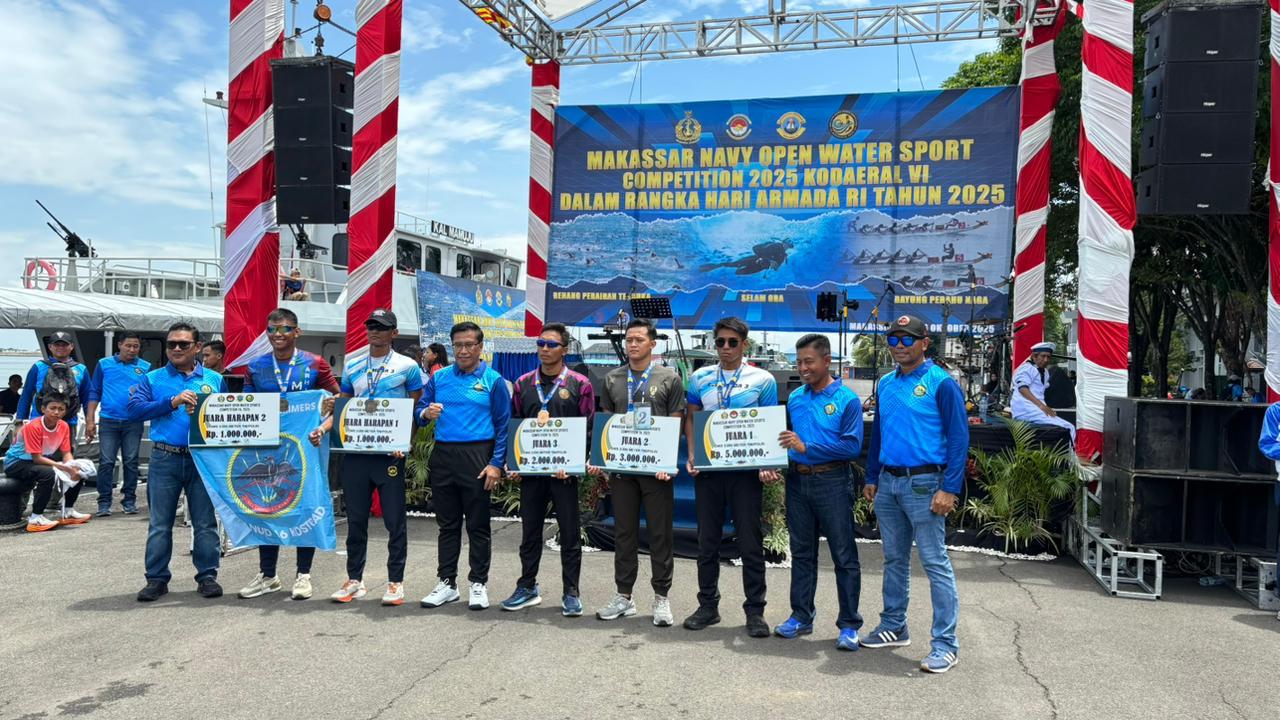 Makassar_HARIANESIA.COM_Prestasi membanggakan kembali ditorehkan oleh prajurit Kodam III/Siliwangi. Anggota Yonif TP 839/Satria Abyakta, Serda Reyza Saputra Aldeyana, berhasil meraih Juara 2 dalam ajang Makassar Navy Open Water Sport Competition 2025 kategori Renang 3 Km TNI-POLRI yang digelar di Kodaeral VI Makassar, Minggu (26/10/2025).