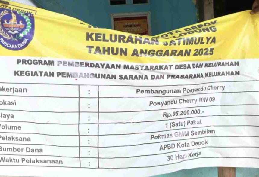 Depok_HARIANESIA.COM_ Proyek pembangunan Posyandu Cherry di RW 09, Kelurahan Jatimulya, Kecamatan Cilodong, kembali memantik sorotan. Pekerjaan yang diampu Kelompok Kerja Masyarakat (Pokmas) GMM Sembilan dengan anggaran Rp95.200.000 dari APBD Kota Depok dan tenggat 30 hari kalender ini, diduga kuat tidak berjalan sesuai aturan.