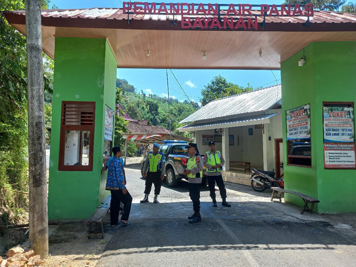 Tidak hanya melakukan pemantauan, AKP Santoso juga tampak aktif berdialog dengan para pengunjung. Dengan pendekatan humanis, Kapolsek menyapa wisatawan yang sedang menikmati pemandian air panas sembari menyampaikan imbauan kamtibmas.