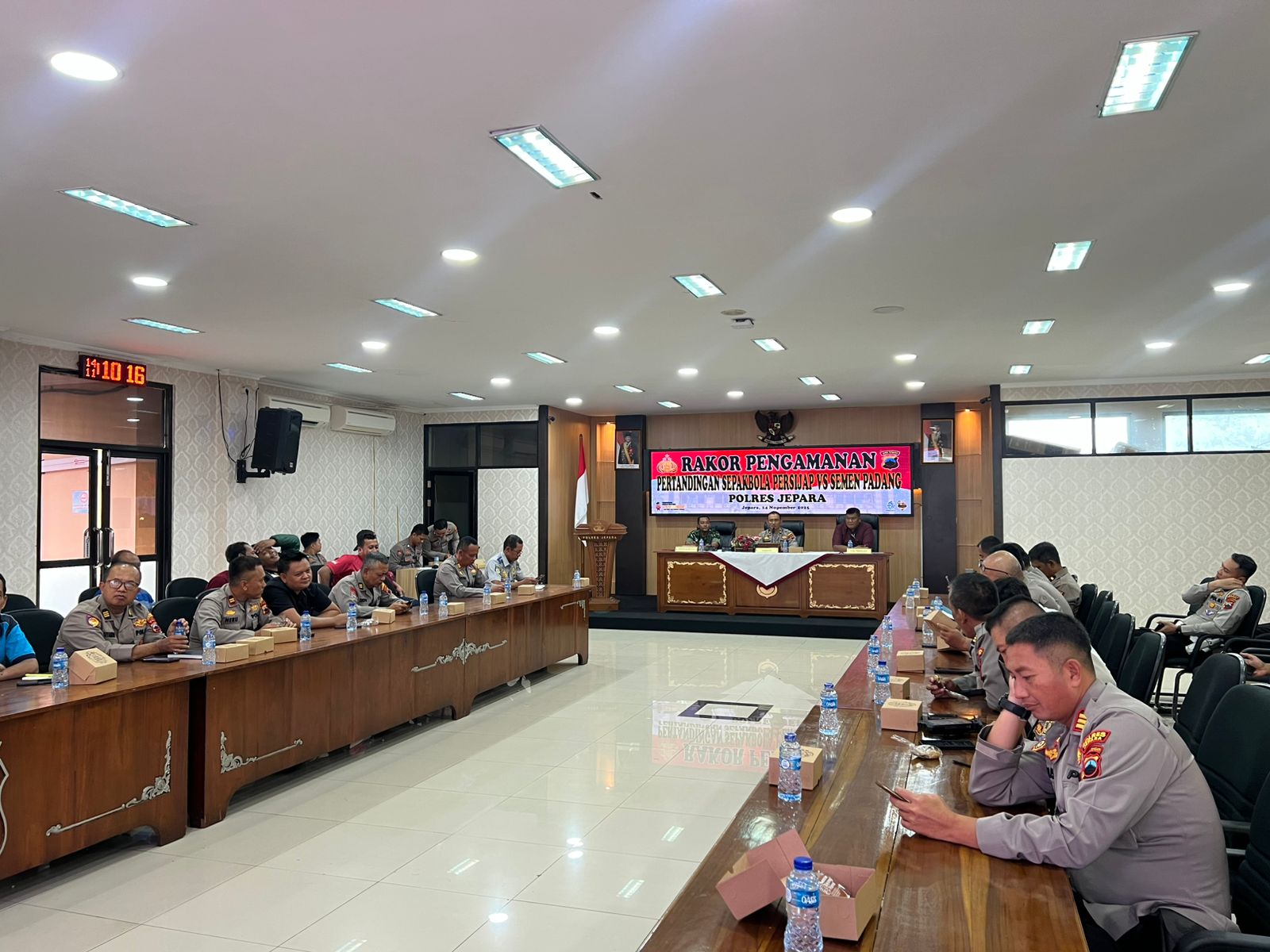 Jepara – Polres Jepara | Kepolisian Resor (Polres) Jepara yang merupakan jajaran Polda Jawa Tengah menggelar rapat koordinasi persiapan pengamanan sepak bola pekan ke-13 BRI Super League 2025/26 antara Persijap Jepara Vs Semen Padang FC yang bertempat di aula Mapolres Jepara, pada Jumat (14/11/2025).