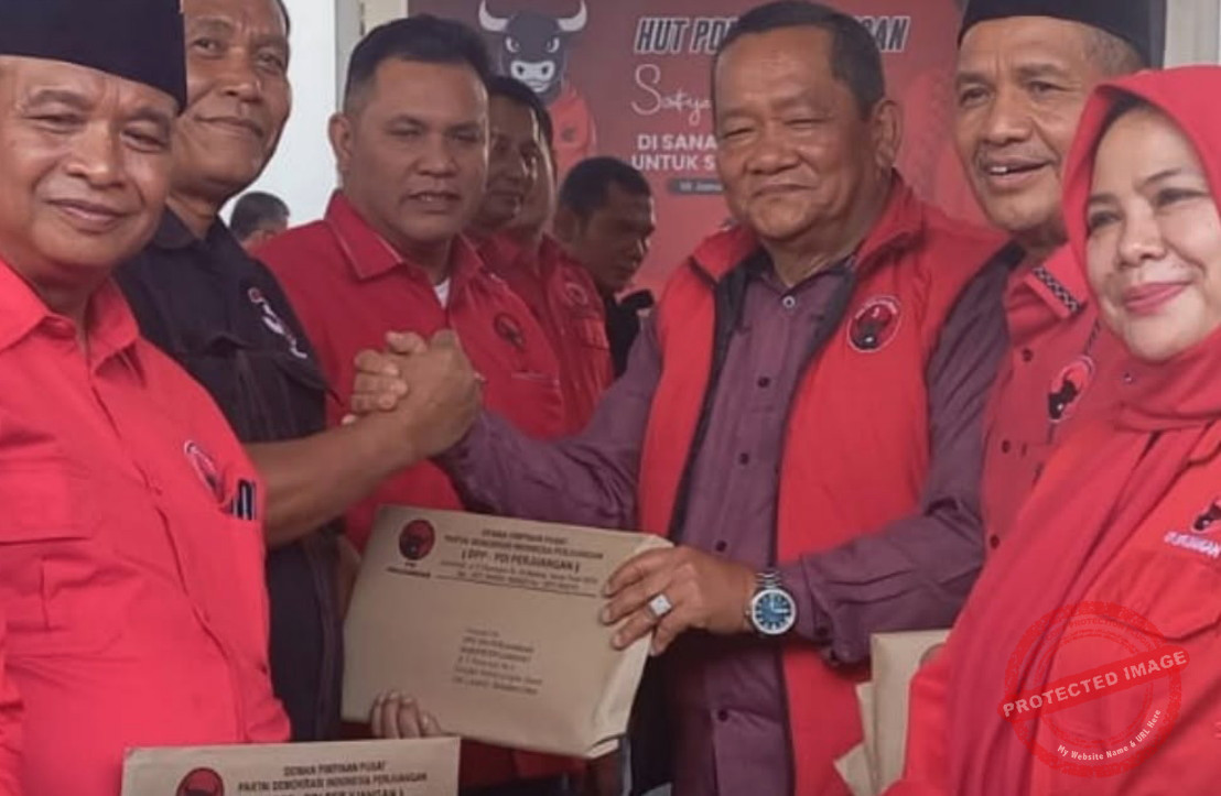 Jakarta_Ketua DPD PDI Perjuangan Sumut Rapidin Simbolon, secara serentak menyerahkan Surat Keputusan (SK) kepengurusan Dewan Pimpinan Cabang (DPC) kabupaten/kota se-Sumut untuk periode 2025-2030.