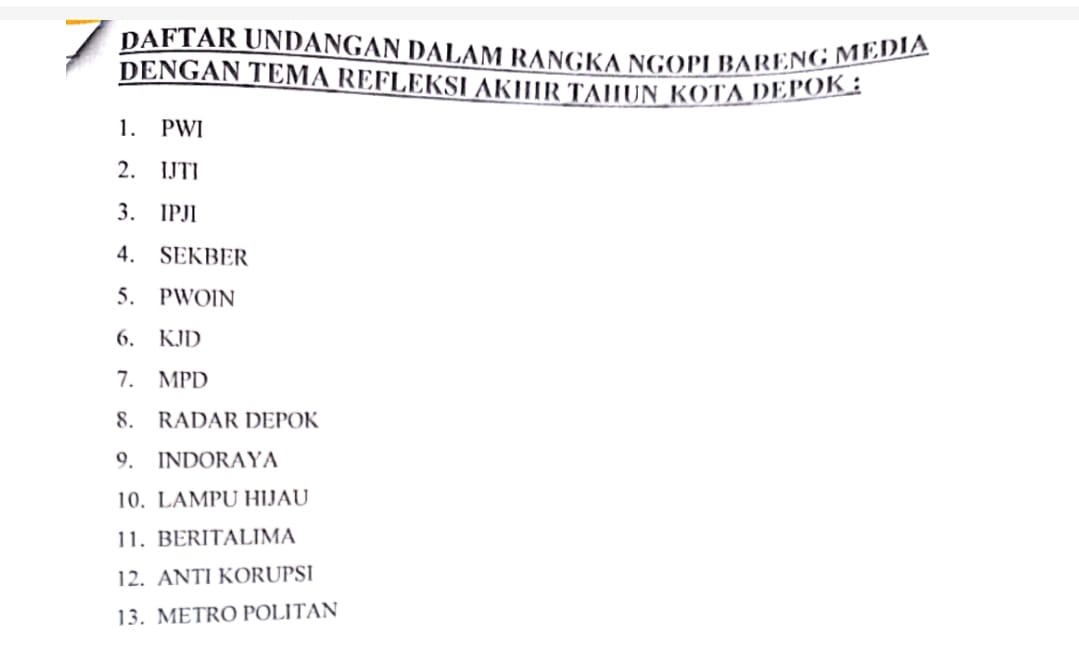 Namun, yang menjadi sorotan publik, undangan tersebut hanya ditujukan kepada 13 pihak dari unsur media dan organisasi tertentu. Sejumlah media dan organisasi atau komunitas lain di Kota Depok tidak tercantum dalam daftar undangan.