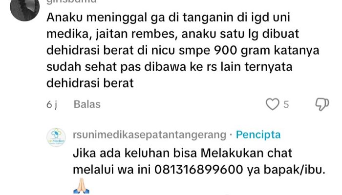 Tangerang, 6 Mei 2025 – Pelayanan di RS Uni Medika Sepatan kembali menjadi sorotan setelah seorang ibu bernama Rani diduga mendapat perlakuan kurang layak usai melahirkan bayi kembar di rumah sakit tersebut.