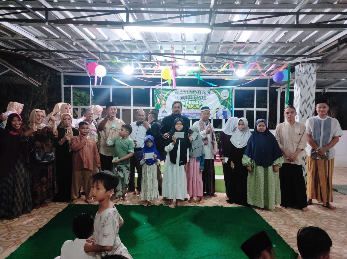 Acara ditutup dengan pembagian santunan kepada anak yatim oleh Hj. Nurhayati dan para donatur, serta sholat Tarawih berjamaah, menandai momen penuh berkah dan kebersamaan di bulan suci Ramadan.
