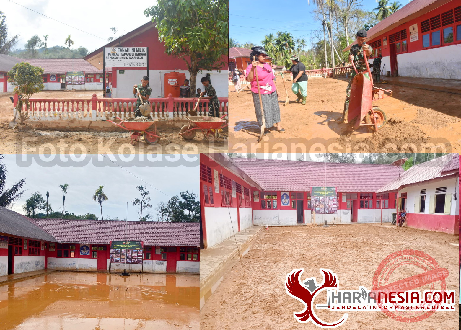 Tapanuli Tengah, –Satgas Penanggulangan Bencana Alam (Gulbencal) melaksanakan pembersihan ulang SDN 152983 di Kelurahan Hutanabolon I, Kecamatan Tukka, Kabupaten Tapanuli Tengah, Sabtu (21/2/2026), setelah banjir susulan akibat curah hujan tinggi kembali menggenangi lingkungan sekolah.