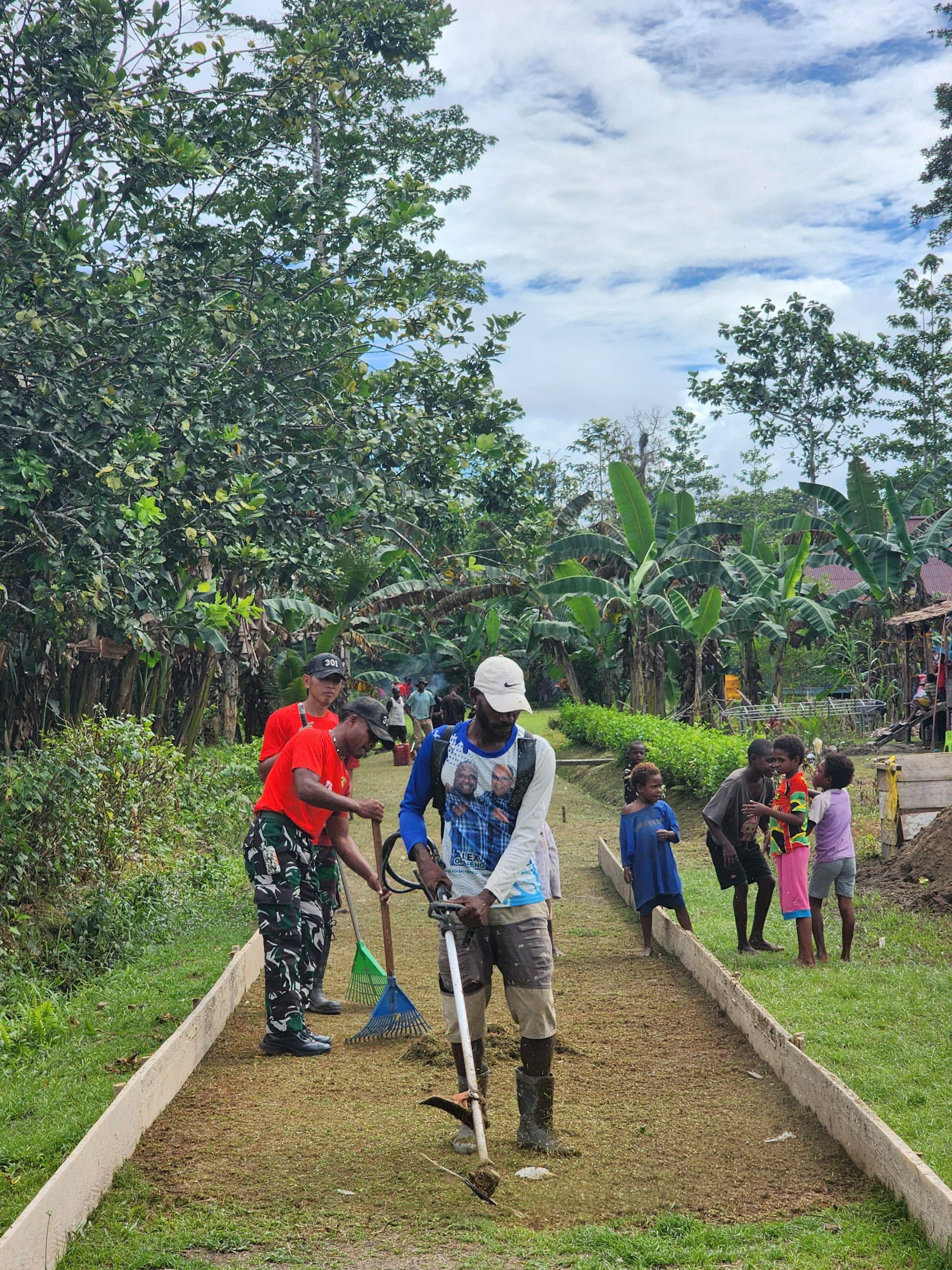 HARIANESIA.ComTimika, Papua Tengah_Satgas Pam Obvitnas Yonif 301/PKS Pos Jitas Dalam rangka meningkatkan kepedulian masyarakat terhadap pentingnya kebersihan dan semangat gotong royong, menggelar kegiatan Karya Bakti bersama masyarakat serta pembagian sembako di Kampung Kanmapri, Distrik Jita, Kabupaten Timika, Provinsi Papua Tengah. Selasa (04/11/2025)