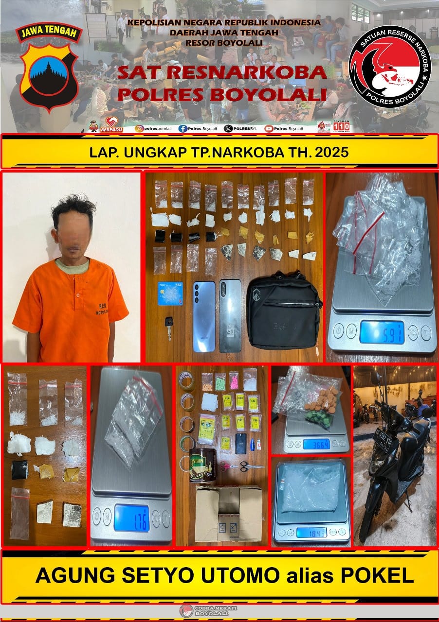 “Kami menerima informasi adanya aktivitas mencurigakan di area kebun yang sering dijadikan tempat menanam paket narkoba siap edar. Setelah dilakukan pengintaian dan penggerebekan, tersangka berhasil diamankan beserta barang bukti sabu dan ekstasi dalam jumlah cukup besar. Pengungkapan ini menjadi bukti keseriusan Polres Boyolali dalam memberantas jaringan pengedar narkotika serta menekan peredaran obat-obatan terlarang tanpa izin edar/resmi di wilayah hukum Boyolali,” ujar AKP Sugihantoro.