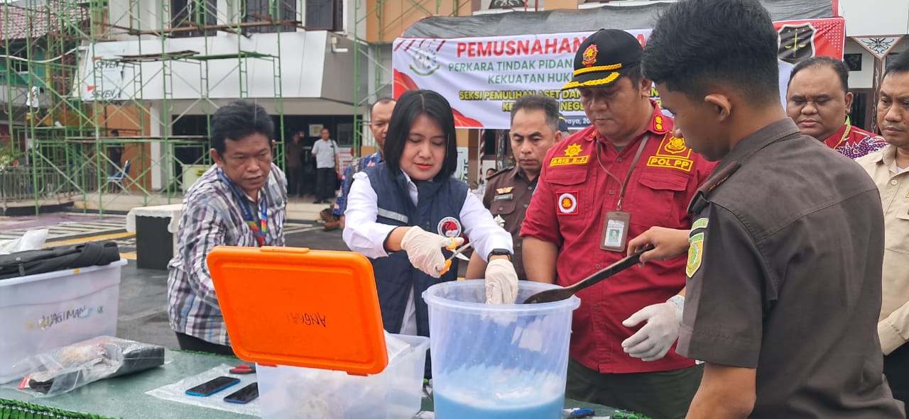 Pemusnahan dilakukan melalui dua metode, yaitu melarutkan narkotika ke dalam cairan pembersih lantai dan membakar barang bukti dari perkara umum serta narkoba.