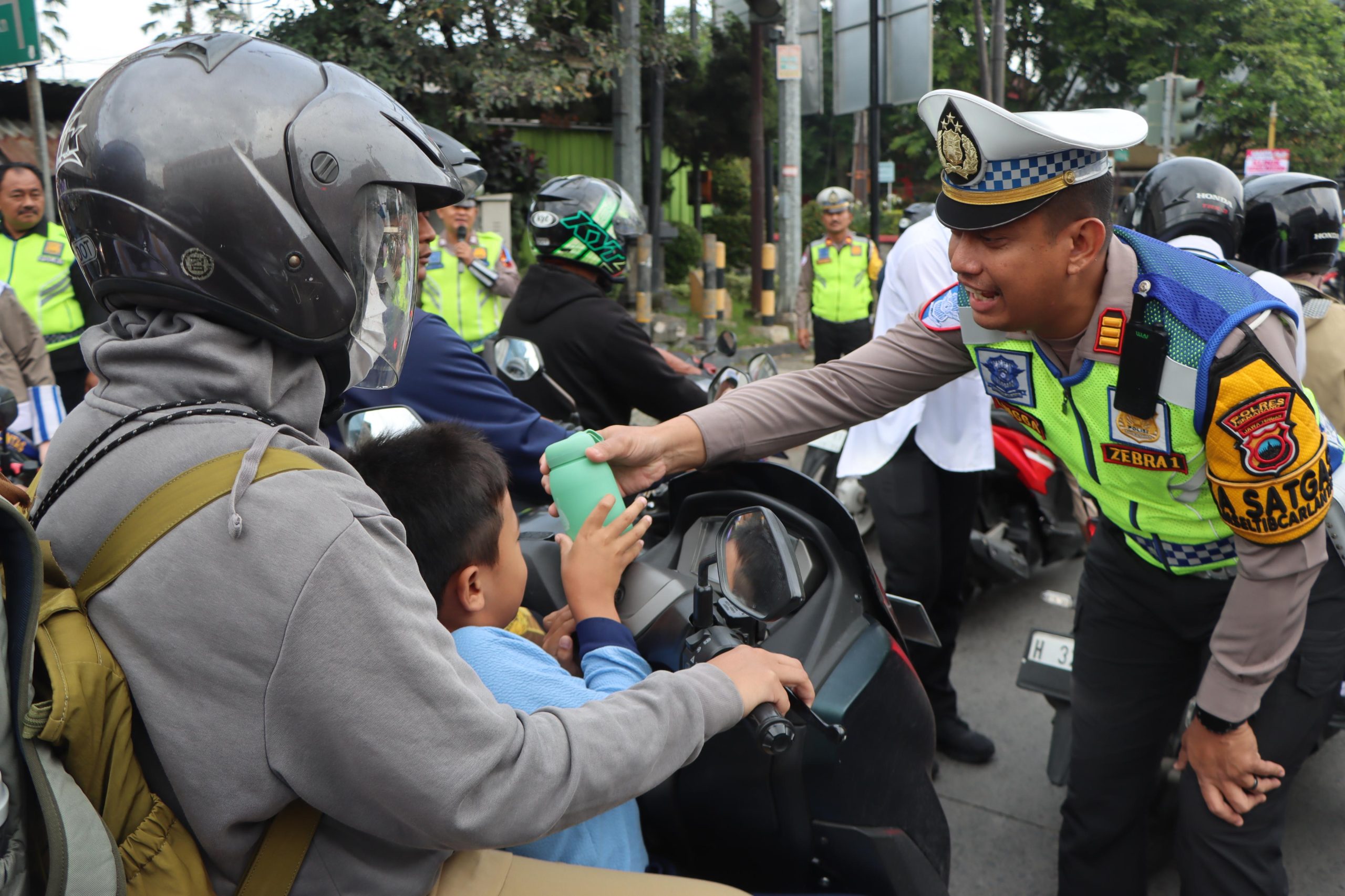 “Dalam rangkaian Kegiatan Ops Zebra Candi 2025, dan mengedepankan upaya pencegahan. Hari ini kami melaksanakan pembagian Coklat, gantungan kunci maupun Tumbler kepada pengendara yang tertib di lampu Traffict Light Alun alun lama ungaran. Tujuannya mengajak pengguna jalan untuk tertib aturan Lalu lintas, serta meningkatkan kesadaran akan fatalitas kecelakaan.” Tegas Wakapolres.