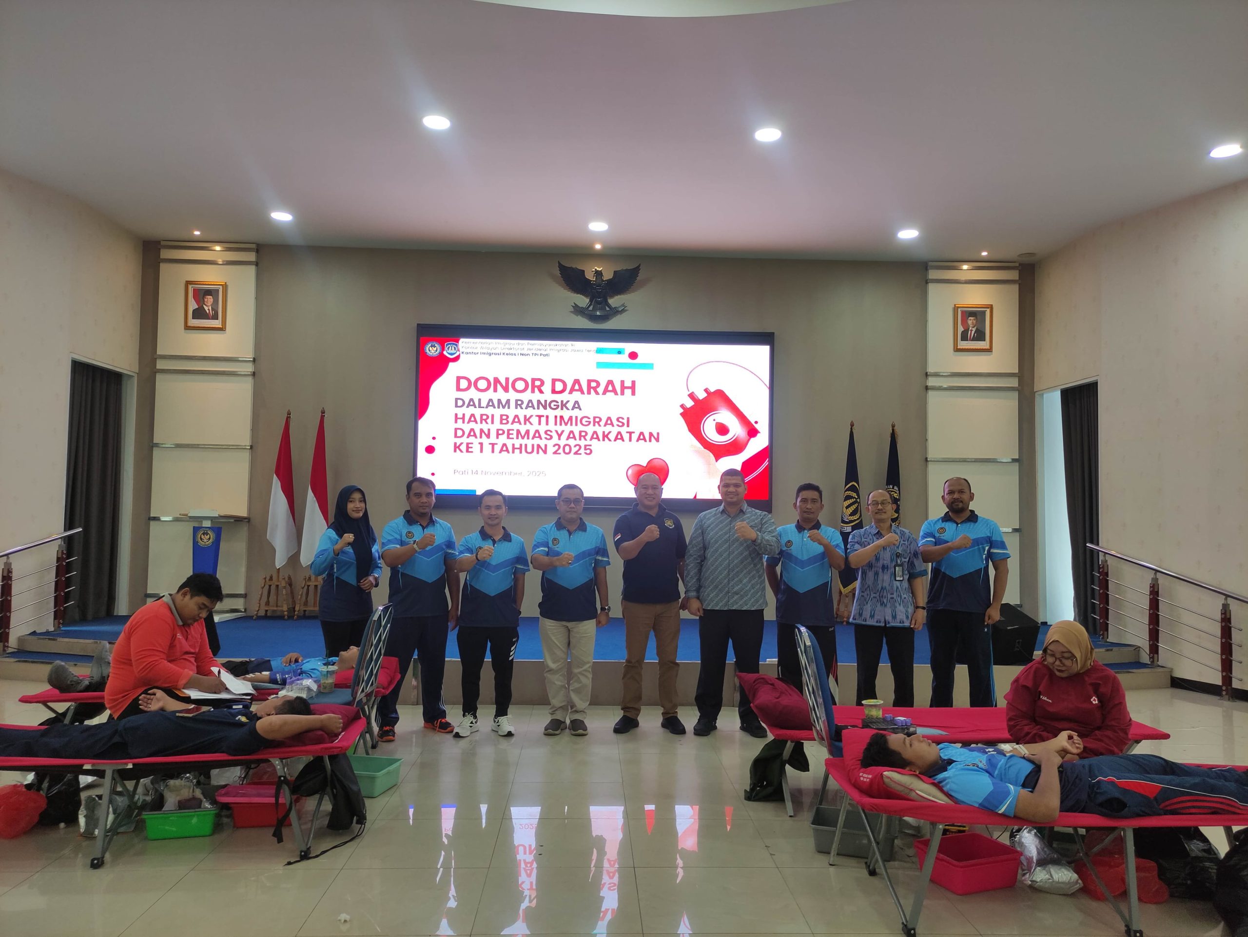 Pati_HARIANESIA.COM_ Kantor Imigrasi Kelas I Non TPI Pati menggelar kegiatan donor darah dalam rangka hari bakti imigrasi dan pemasyarakatan ke 1 sebagai wujud kepedulian sosial dan kemanusiaan. Kegiatan ini diikuti oleh Kepala Lapas Kelas IIB Pati, pejabat struktural, serta para pegawai, yang bersama-sama berpartisipasi untuk membantu memenuhi kebutuhan darah di wilayah Pati dan sekitarnya (14/11).
