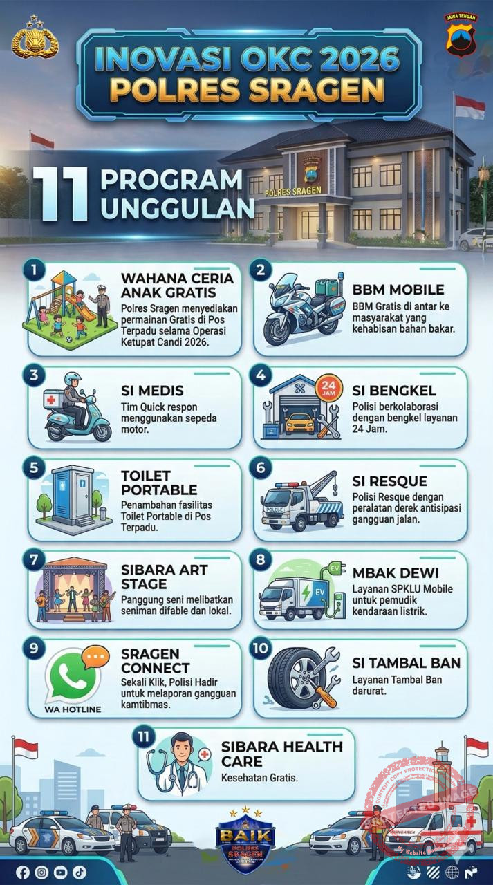 Melalui berbagai inovasi tersebut, Polres Sragen berupaya menghadirkan pelayanan yang tidak hanya cepat dan responsif, tetapi juga ramah dan berkesan bagi masyarakat selama momentum mudik Lebaran 2026.