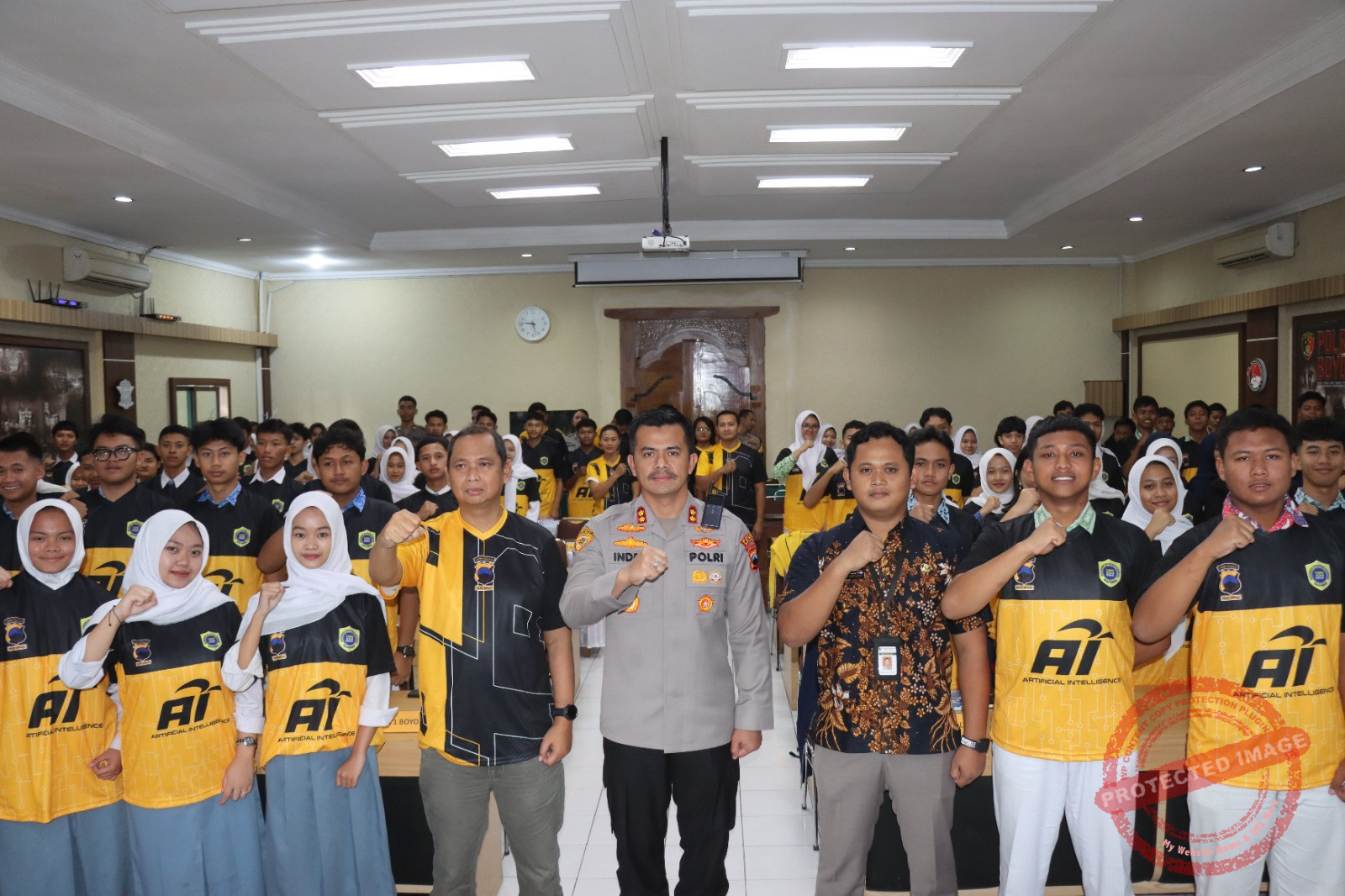Dalam sambutannya, Kapolres Boyolali menegaskan bahwa perkembangan Artificial Intelligence (AI) telah membawa perubahan besar dalam berbagai bidang kehidupan. Generasi muda diharapkan mampu beradaptasi, berpikir kritis, serta memanfaatkan teknologi secara bijak dan bertanggung jawab. Ia juga mengingatkan pentingnya kewaspadaan terhadap penyalahgunaan teknologi seperti deepfake dan penyebaran hoaks yang berpotensi menimbulkan tindak kejahatan.