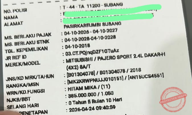 Berdasarkan hasil pengecekan identitas kendaraan yang dilakukan di lapangan, plat nomor yang menempel pada mobil tersebut diduga bukan nomor asli. Plat itu disebut menyerupai nomor kendaraan jenis lain, yakni T 44 TA, yang diduga sengaja dipasang untuk mengelabui identitas kendaraan sebenarnya.