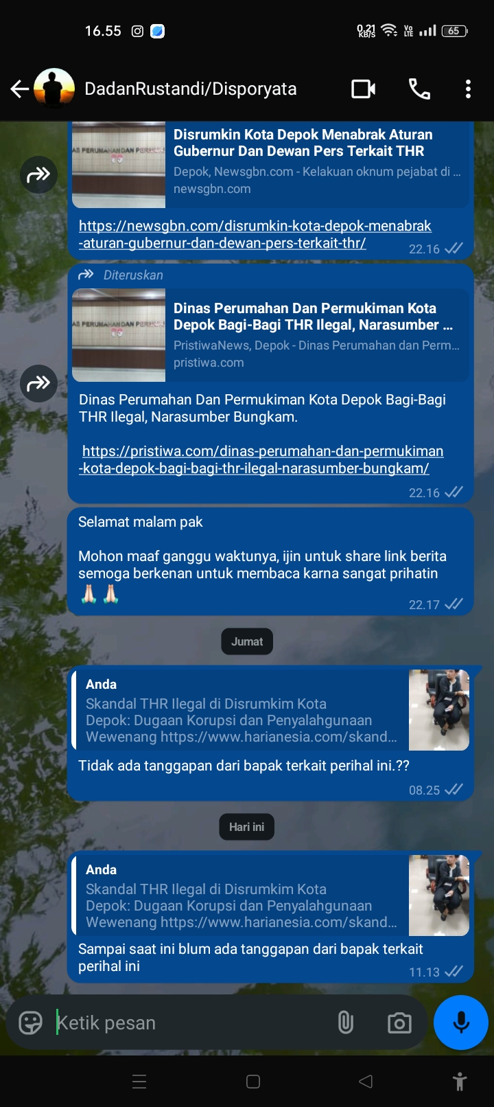 Skandal THR Ilegal di Disrumkim Kota Depok: Kadis Bungkam di Tengah Dugaan Korupsi