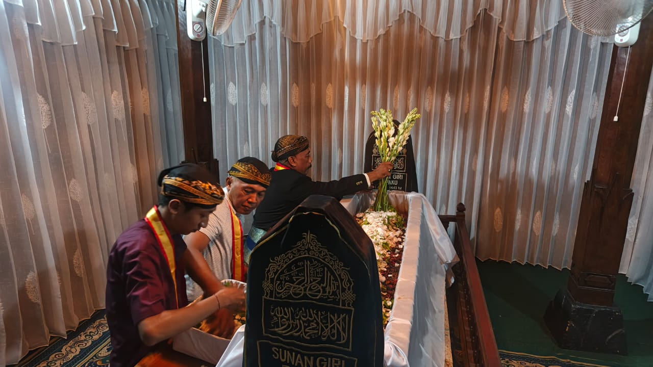 “Kita abdidalem mendapatkan dawuh dari S.I.S.K.S Pakoe Boewono XIV untuk ziarah ke makam leluhurdalem Sunan Gresik. Ini adalah wujud pelestarian tradisi mendoakan leluhur oleh Karaton Surakarta Hadiningrat. Di pasareyan ini kami berdoa kepada Tuhan Yang Maha Esa agar S.I.S.K.S Pakoe Boewono XIV diberi kesehatan, kekuatan, panjang umur, serta kebijaksanaan melalui berkah karomah leluhurdalem Sunan Giri,” tutur KRA. Sariyono dengan penuh hormat.