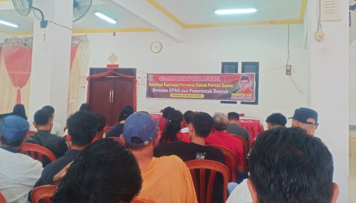 Dihadapan 150 peserta undangan hadir sore utu Sugianto,S.I.P. yang merupakan Kader PDI PERJUANGAN sudah menjabat sebanyak 4 periode, 2 Periode di DPRD Kota Tangerang, 2 Periode saat ini di DPRD Provinsi Banten, kepada para peserta menjelaskan “tentang beberapa peraturan daerah yang telah disahkan oleh DPRD Provinsi Banten, seperti Peraturan Daerah tentang Pengelolaan Lingkungan Hidup dan Peraturan Daerah tentang Pembangunan Infrastruktur, penanganan masalah sosial.