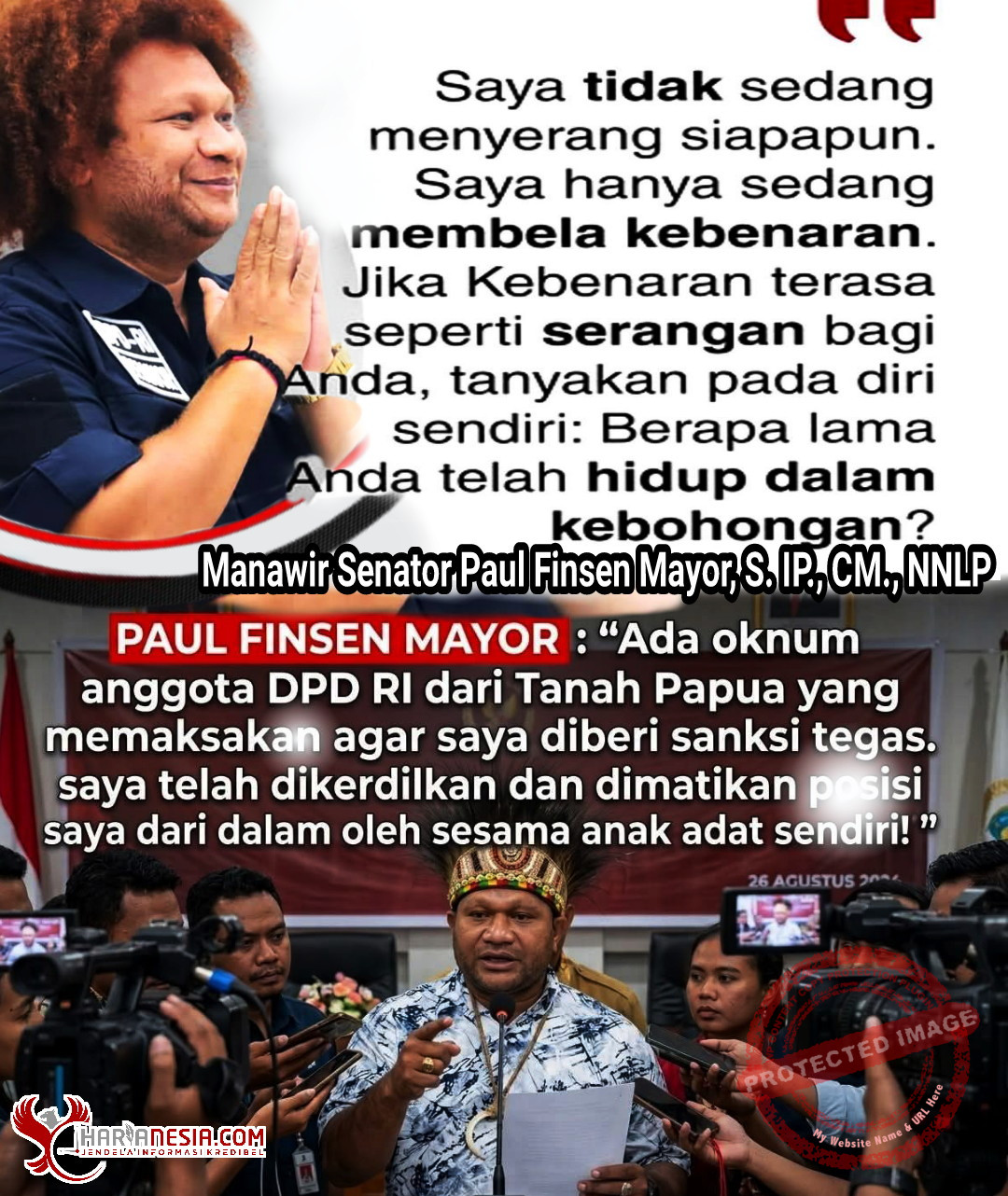 Jakarta_HARIANESIA.COM_ Menanggapi pernyataan Ketua MRP Papua Tengah tersebut, Senator Paul Finsen Mayor memberikan keterangan singkat melalui pesan WhatsApp kepada harianesia.com, Rabu malam (15/4/2026).