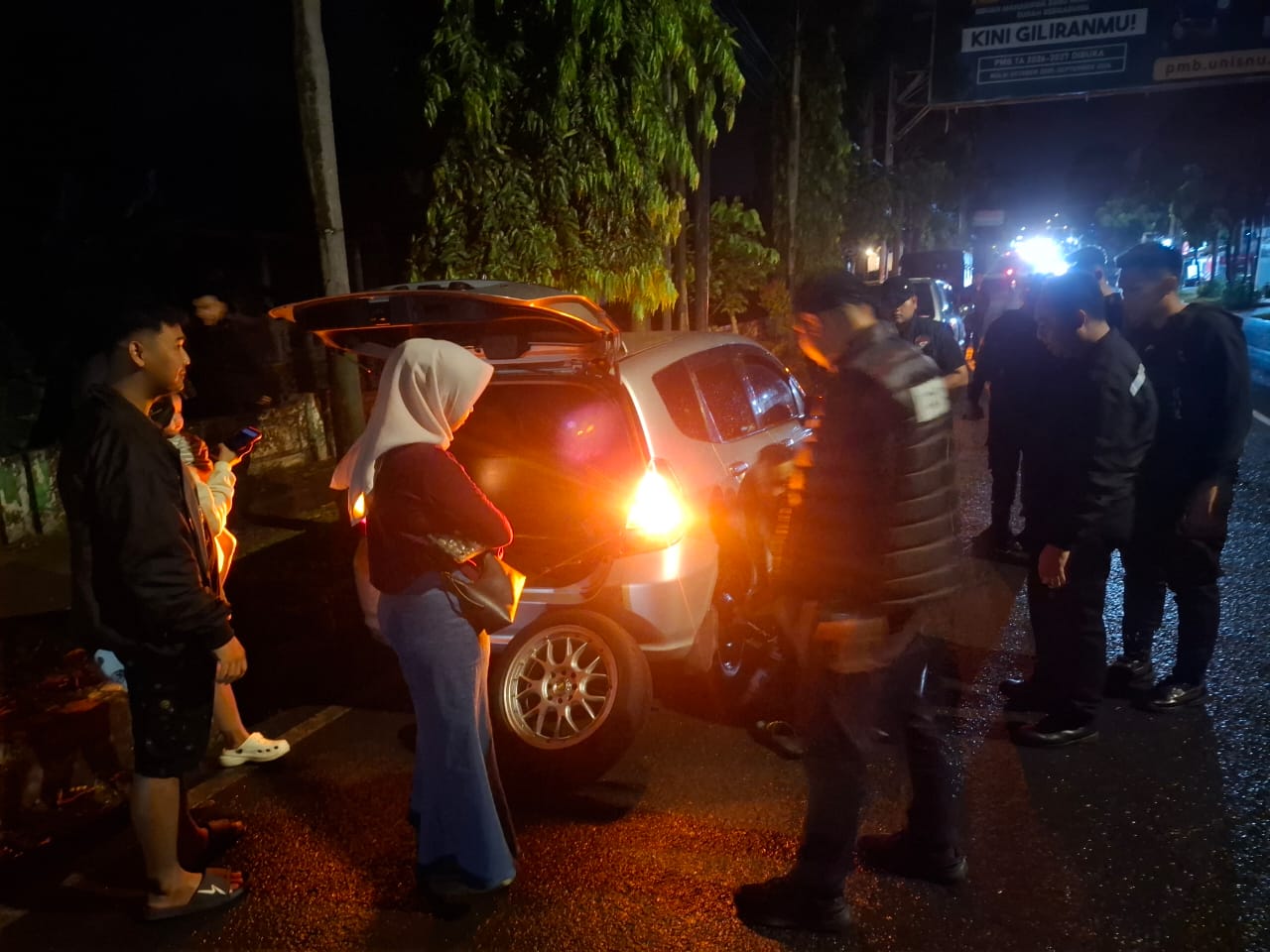 Berbekal laporan warga tersebut, selanjutnya petugas mendatangi lokasi, dan benar sebuah mobil berhenti di bahu jalan dengan pengemudi dan keluarganya yang tampak kebingungan.