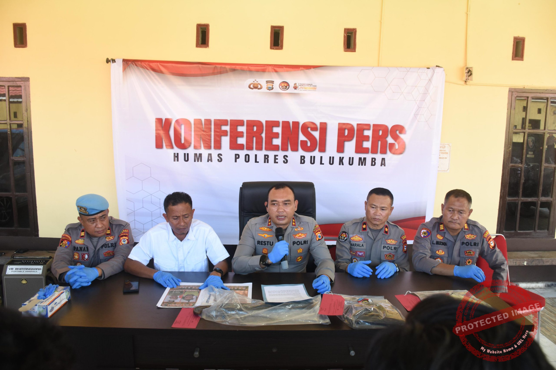 Hal tersebut disampaikan dalam konferensi pers yang digelar pada Rabu (1/4/2026) di Mapolres Bulukumba yang dipimpin langsung oleh Kapolres Bulukumba AKBP Restu Wijayanto, S.I.K., didampingi Kasat Reskrim IPTU Muhammad Ali, S.Sos., Kasi Humas KOMPOL H. Marala, Kasiwas AKP Lis Mulyadi, serta Kasi Propam IPTU Andi Panangrangi, dan dihadiri sejumlah awak media.