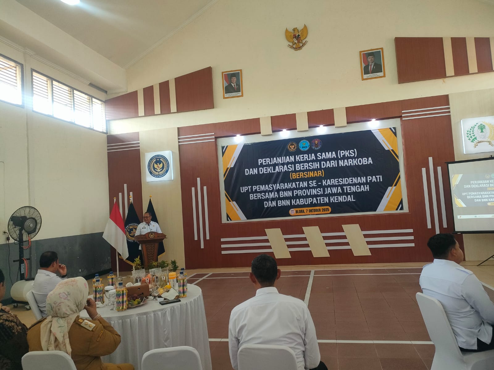 Deklarasi Bersinar menjadi wujud nyata komitmen bersama untuk memperkuat upaya pencegahan dan pemberantasan penyalahgunaan narkoba, khususnya di lingkungan Pemasyarakatan. Dalam kegiatan ini, Kabapas Pati bersama para Kepala UPT Pemasyarakatan menandatangani komitmen bersama mendukung program “Indonesia Bersih Narkoba Menuju Indonesia Emas 2045.”