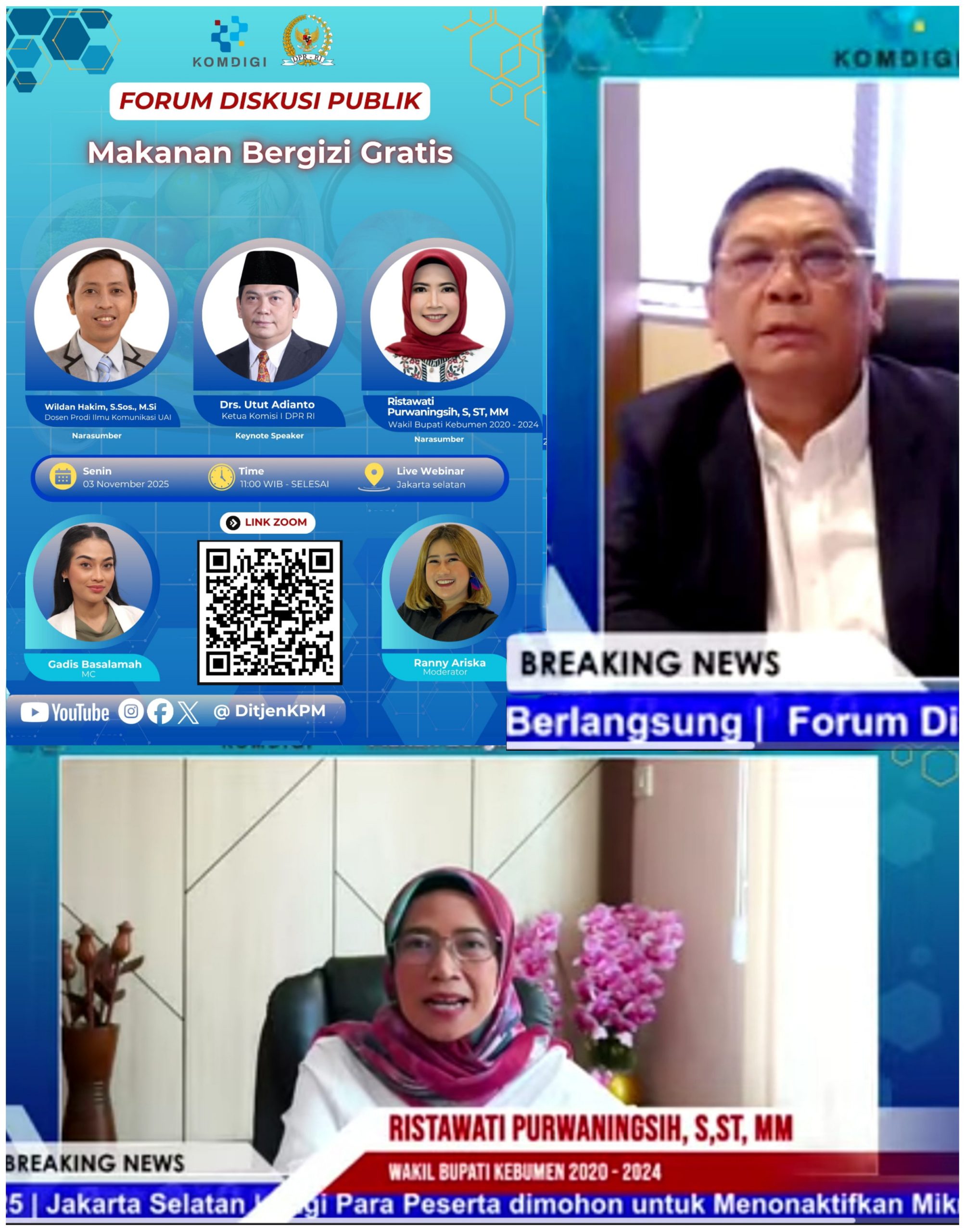 Guna mendukung program tersebut, Direktorat Jenderal Komunikasi Publik dan Media (KOMDIGI) bekerja sama dengan Komisi I DPR RI sukses menyelenggarakan Forum Diskusi Publik dengan tema “Makanan Bergizi Gratis”, pada Senin, 03 November 2025, pukul 11.00 WIB hingga selesai.