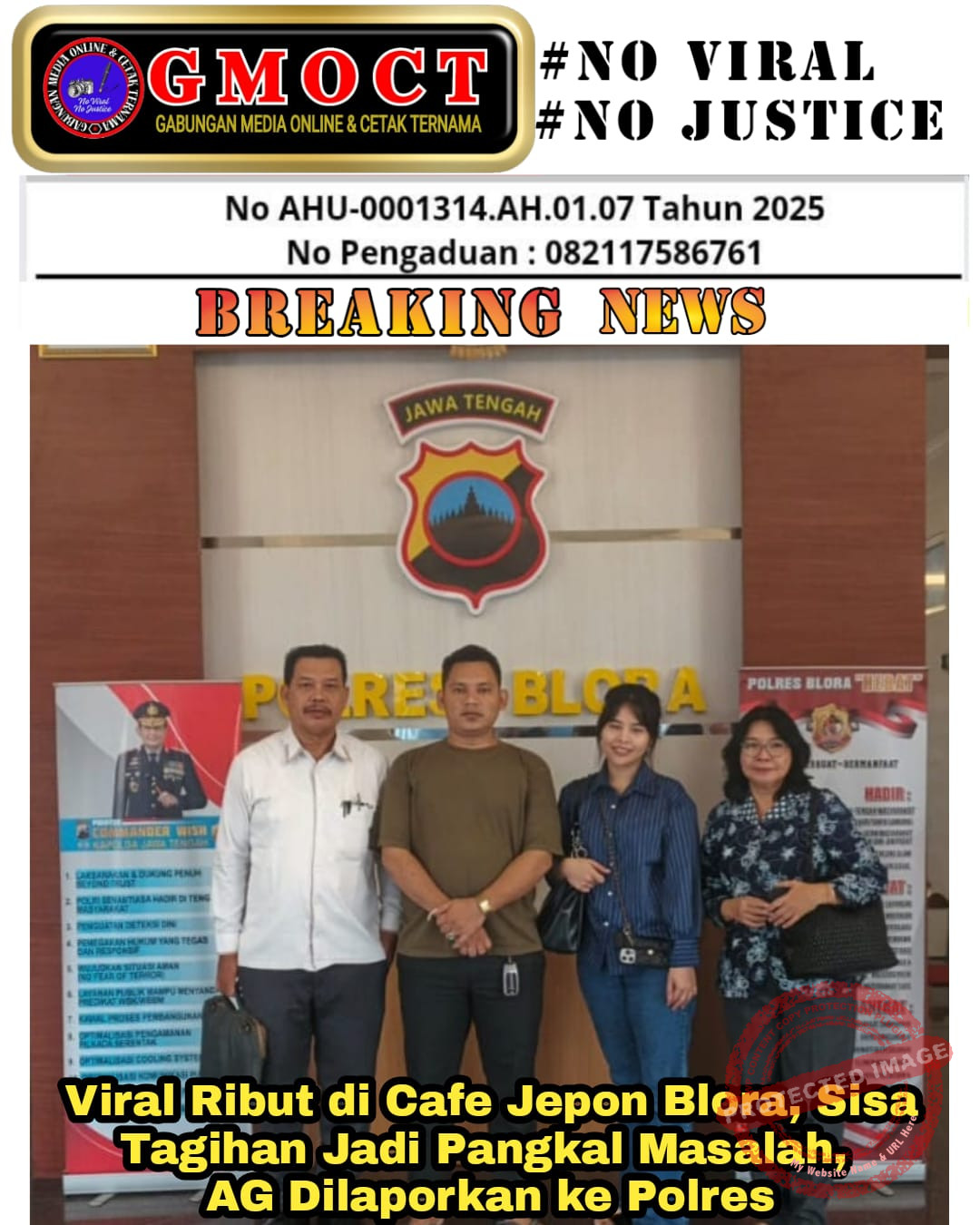 Pemilik cafe secara resmi melaporkan seorang pria berinisial AG ke Polres Blora, setelah dinilai bersikap arogan, membuat gaduh, dan diduga melakukan pengancaman.