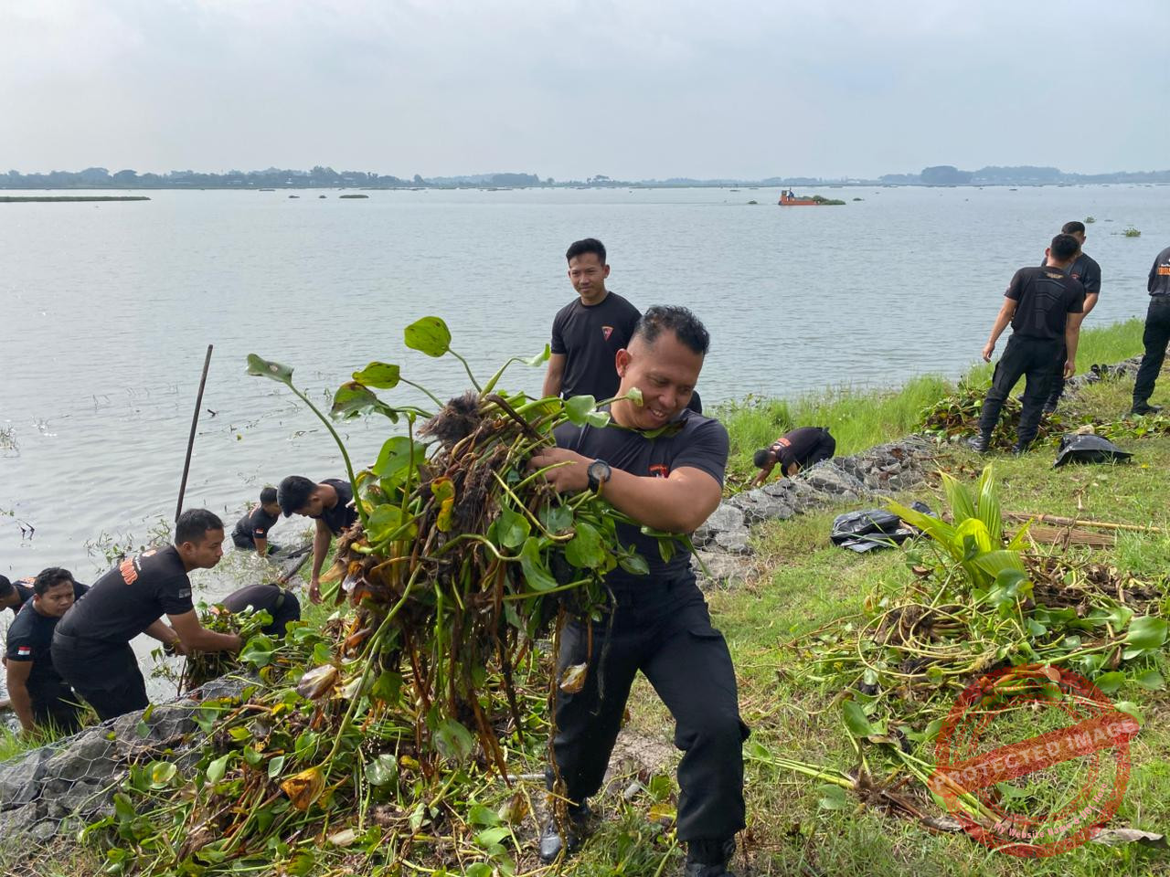 Sejak pukul 07.00 WIB, pemandangan berbeda terlihat di bibir pantai dan area publik. Para personel Brimob dengan seragam khasnya tampak memegang sapu, cangkul, jaring, hingga sekop. Mereka bahu-membahu bersama unsur TNI, perangkat desa, dan masyarakat setempat untuk mengangkat sampah plastik, membersihkan rumput liar, serta memastikan saluran air bebas dari sumbatan.