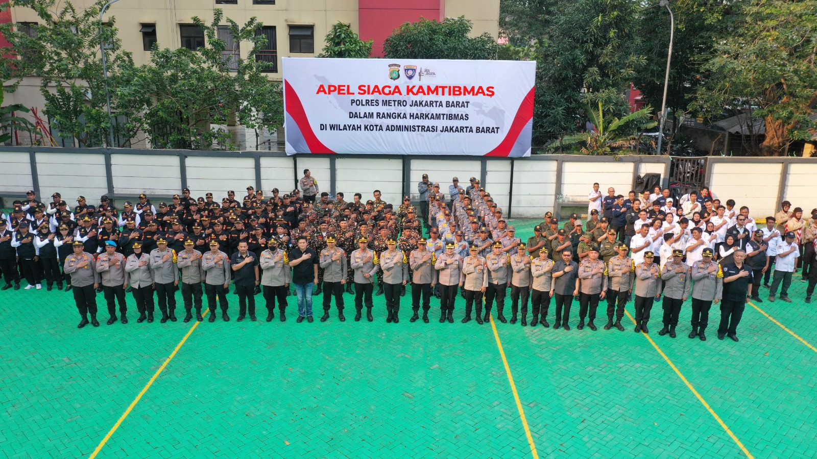 Jakarta Barat_HARIANESIA.COM_Dalam upaya menjaga situasi keamanan dan ketertiban masyarakat yang aman, nyaman, dan kondusif, Polres Metro Jakarta Barat menggelar apel siaga kamtibmas bersama unsur Potensi Masyarakat (Potmas) di Lapangan Hijau Polres Metro Jakarta Barat, Kamis (9/10/2025).