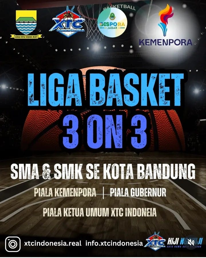 Bandung_HARIANESIA.COM_Semangat olahraga pelajar kembali bergema di Kota Bandung. XTC Indonesia resmi akan menggelar Liga Basket 3-on-3 Antar SMA dan SMK se-Kota Bandung, sebuah kompetisi yang menjadi ruang aktualisasi bagi generasi muda sekaligus bagian dari komitmen organisasi dalam mendukung pembinaan atlet usia sekolah. Ajang ini memperebutkan Trofi Kementerian Pemuda dan Olahraga (Kemenpora RI), Trofi Gubernur Jawa Barat, serta Trofi Ketua Umum XTC Indonesia.